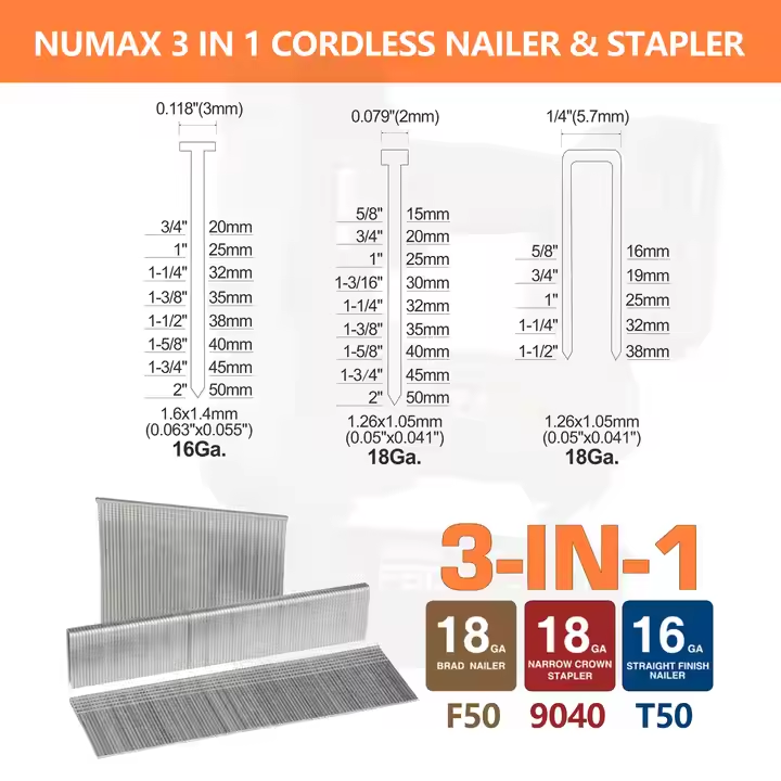Numax Agrafeuse à batterie sans fil de qualité industrielle 3 1 16 18 Gauge 3-en-1 Pistolet à ongles sans fil Brad Nailer Finish Nail Machine