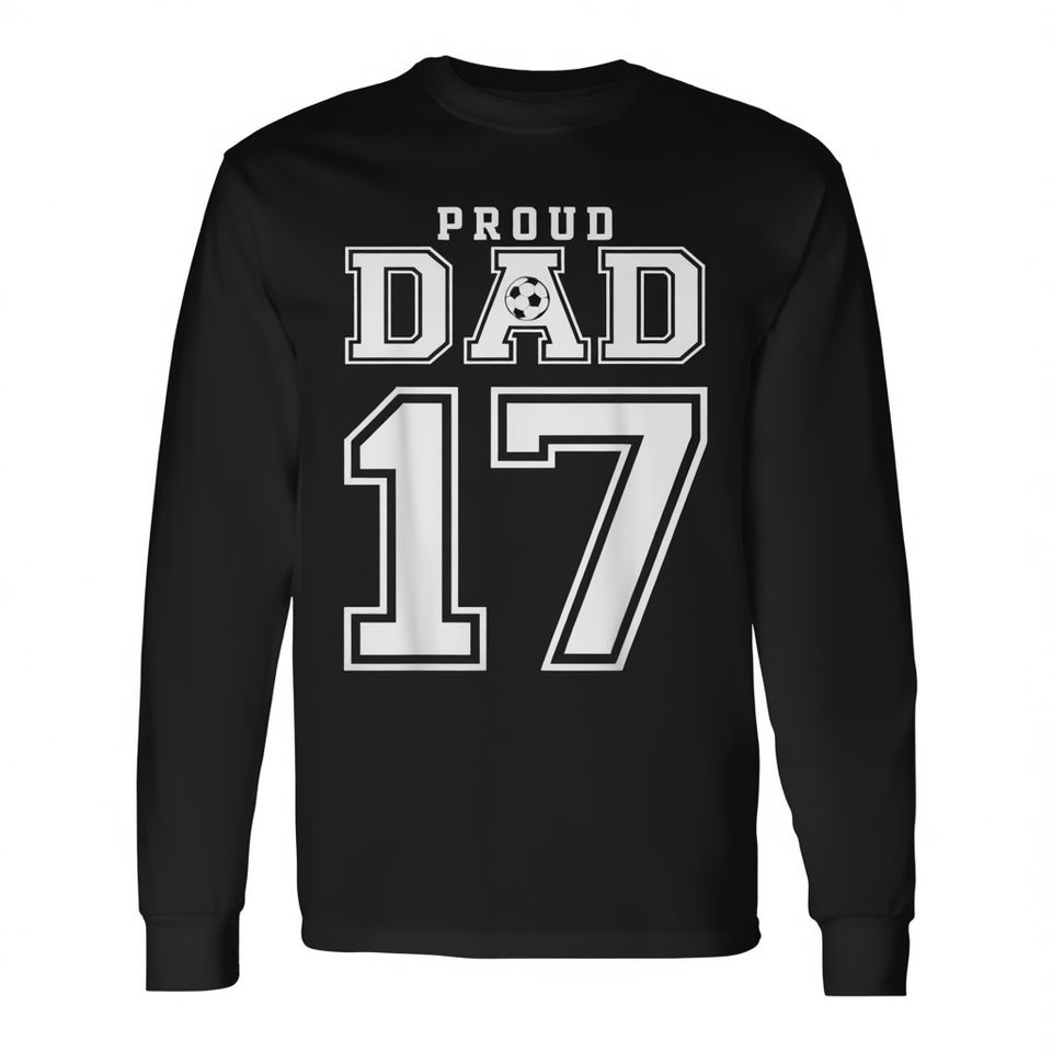 T-shirt de football à manches longues personnalisé pour homme, numéro 17, T-shirt promotionnel personnalisé pour papa fier