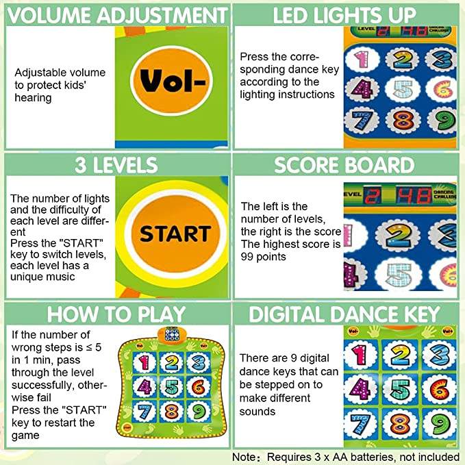 Tapis de danse interactif avec rythme numérique, jeux de tapis de danse, tapis de danse pour enfants, tapis de jeu, jouets cadeaux