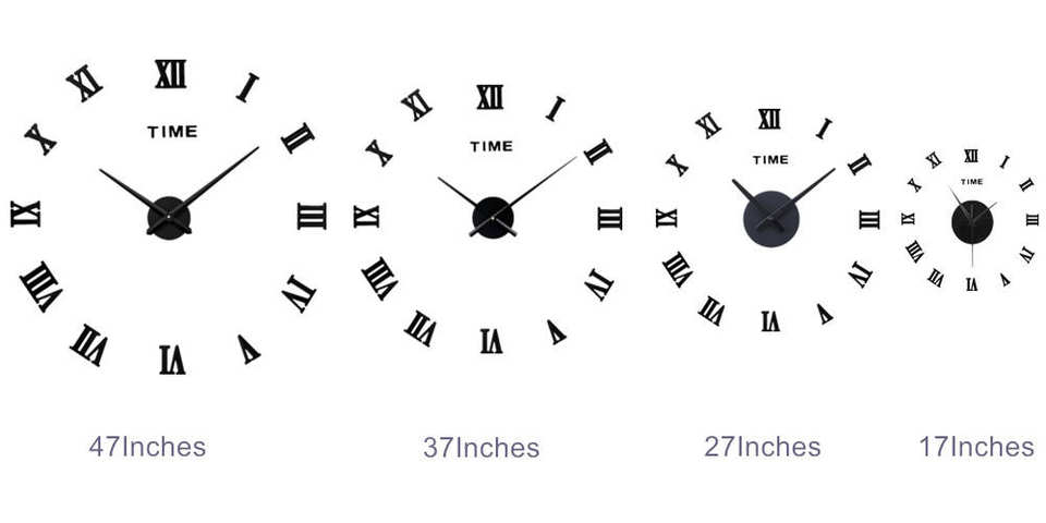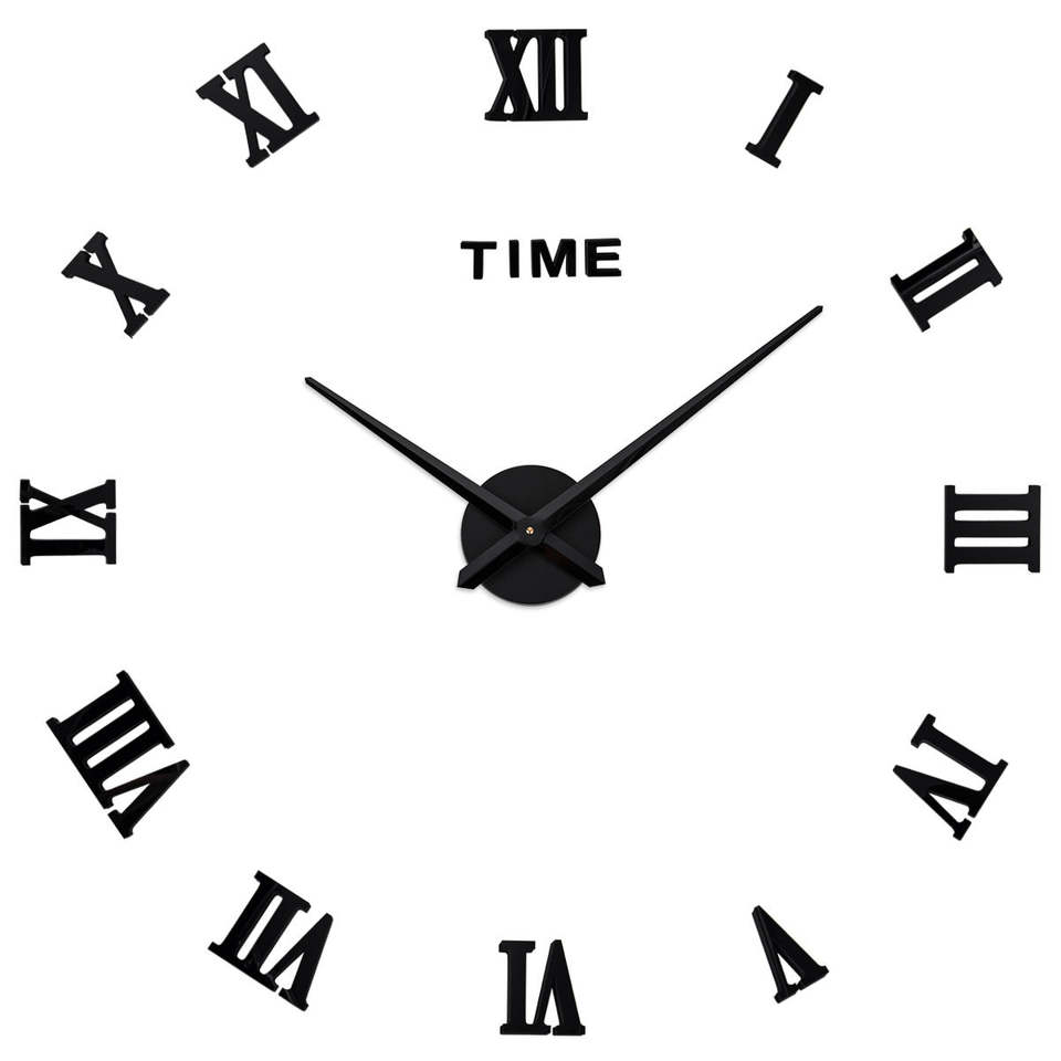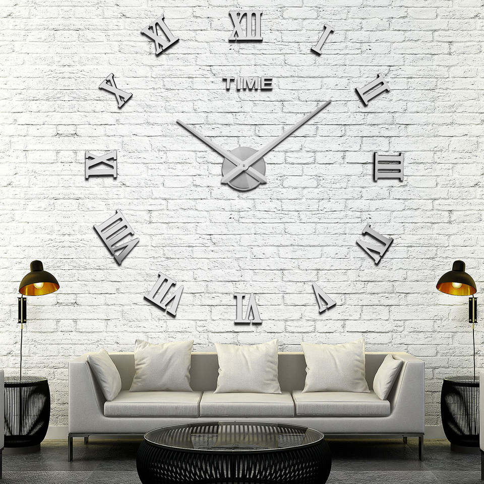 Grande Horloge Murale à Chiffres Silencieuse Sans Cadre Autocollant Mural 3D DIY Romaine Décorative pour Salon Maison et Intérieur
