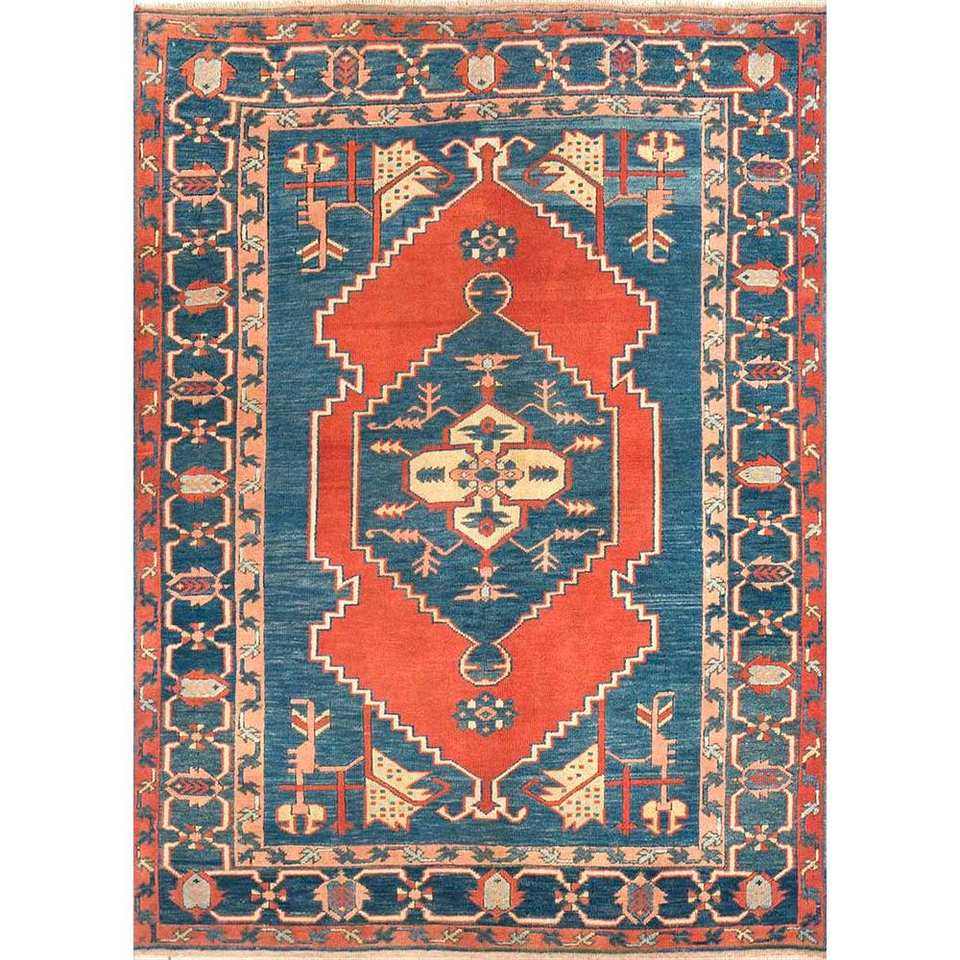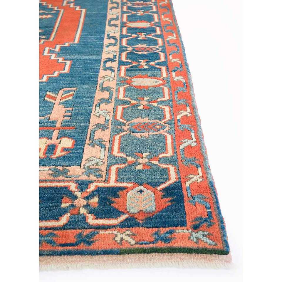 Tapis en laine noué à la main Nuray Blue Pae-1195 9x12, motif rectangulaire à médaillon pour la décoration de la maison et du salon