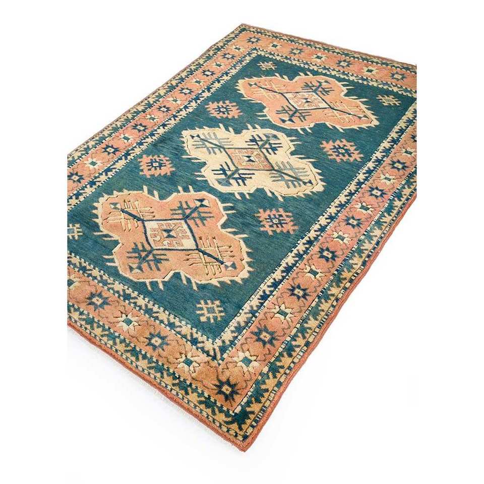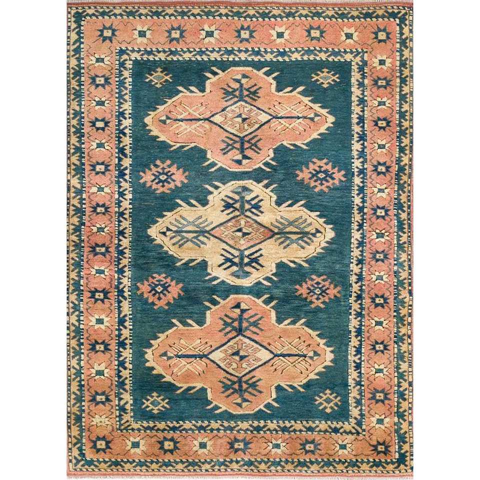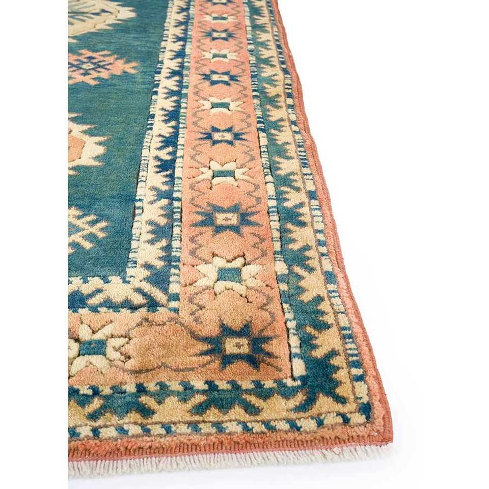 Tapis en laine noué à la main Nuray bleu, motif géométrique, rectangulaire, pour couloir, salon, modèle Pae-922