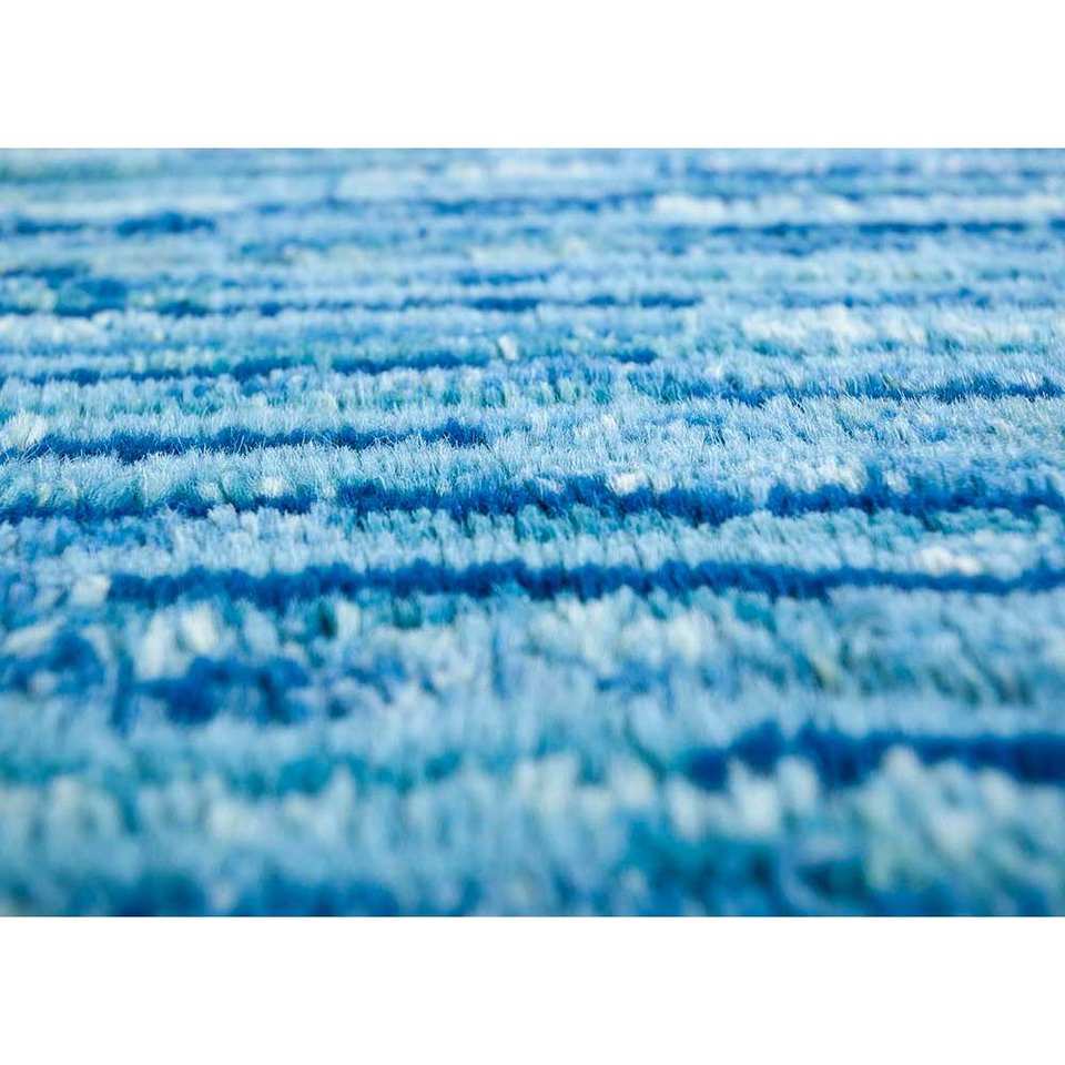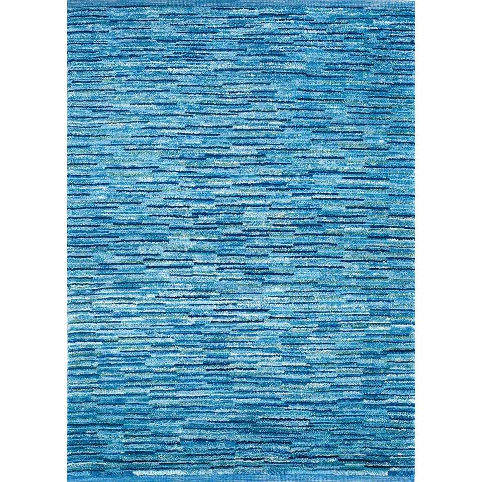 Tapis en laine noué à la main Nuray bleu, motif puzzle rayé rectangulaire pour la maison, le salon ou le couloir - PAE-331