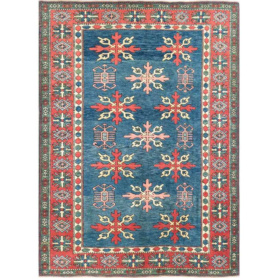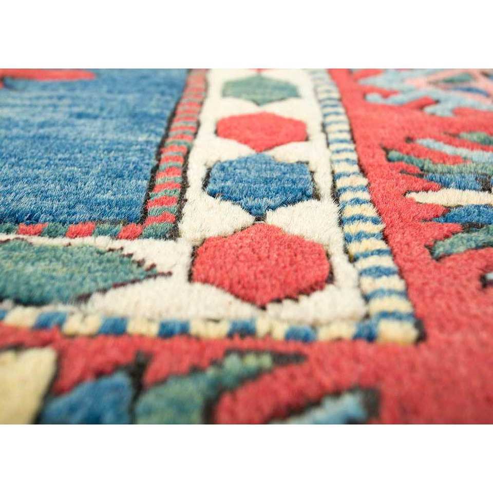 Tapis en laine noués à la main Nuray Blue, motif géométrique puzzle rectangulaire pour entrée et couloir - Pae-1261 9x12, techniques artisanales en viscose