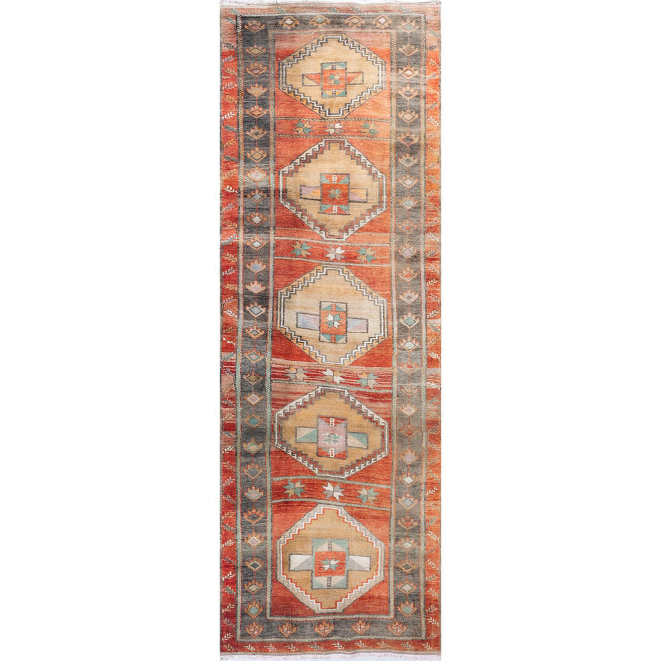 Tapis en laine géométriques et abstraits Nuray Pae-3068 Rouge et Orange noués à la main pour l'entrée, la chambre et le couloir – Tissage rectangulaire