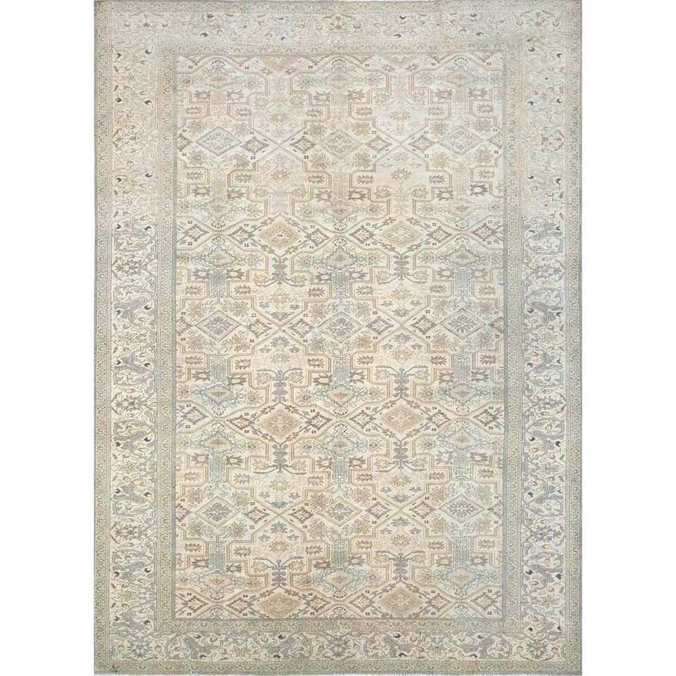 Tapis en laine noués à la main Nuray, motif médaillon beige et marron, style Tabriz, pour couloir et salon, idéal pour chambre d'adolescent