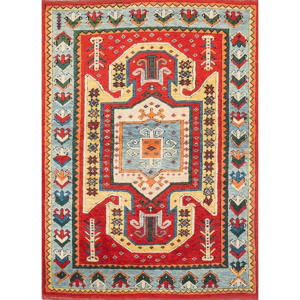 Tapis en laine noués à la main Nuray, motifs abstraits rectangulaires rouge-orange, pour la maison - pour le salon, la chambre à coucher, 9x12 - Pae-1228