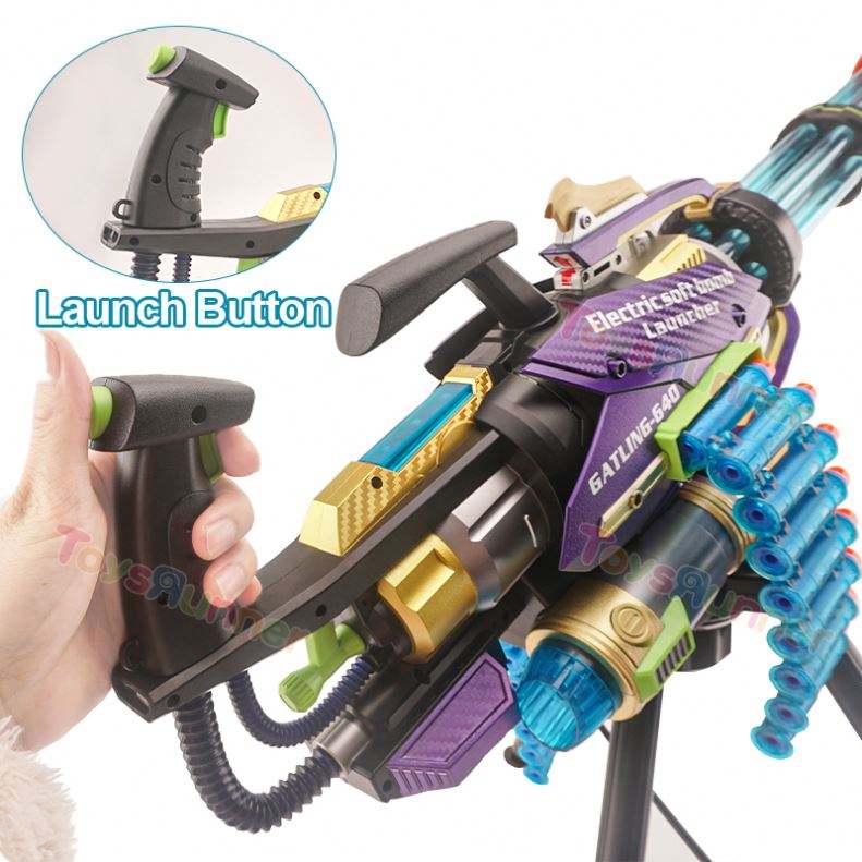 Pistolet à balles molles électrique pour garçons, style Gatling manuel, pour utilisation en extérieur, fabriqué en ABS durable, métal, caoutchouc, mousse EVA plastique