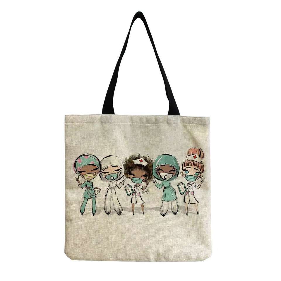 Sacs à bandoulière avec imprimé lettre d'infirmière, fermeture éclair, sac en toile décontracté, sac fourre-tout écologique, sac à main mignon pour femmes, grande capacité, sac de shopping graphique