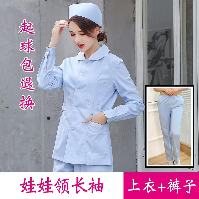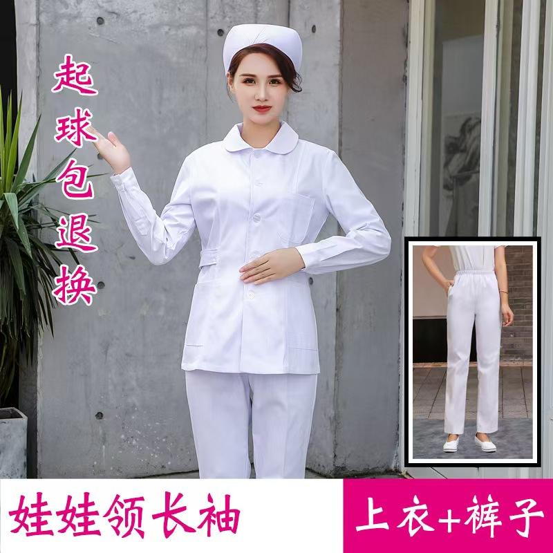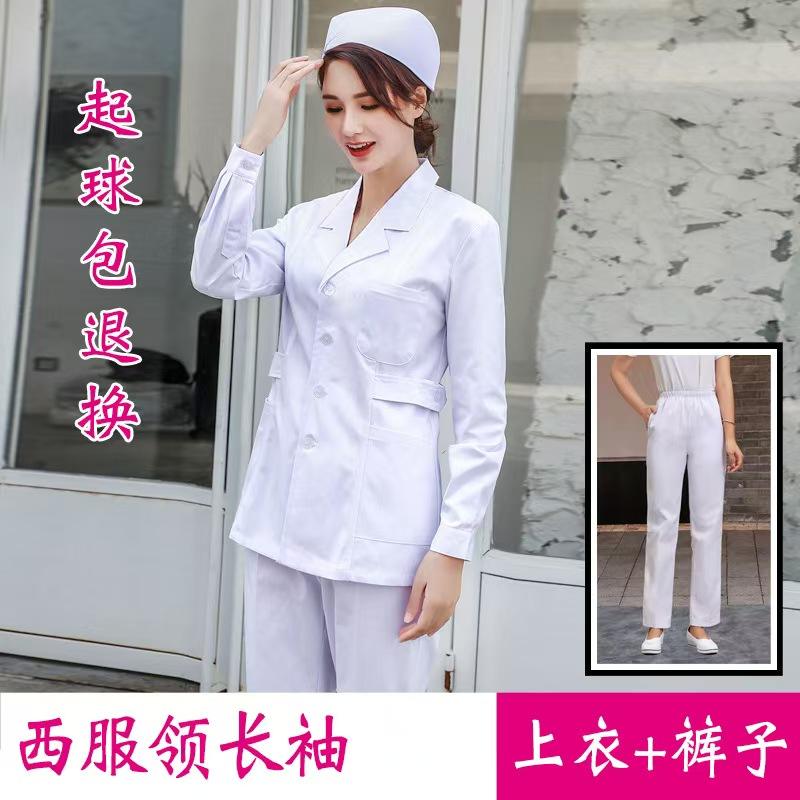 Nurse Uniform Long-sleeve Women's Spring and Autumn Short Two-piece Set, Doctor Uniform Workwear Short White Coat