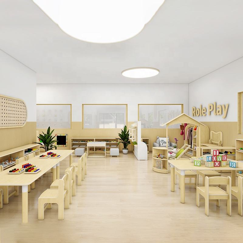 Nursery Colorful Classroom Wooden Furniture and Kindergarten Learning Furniture Sets With Role Play Equipment for Sale