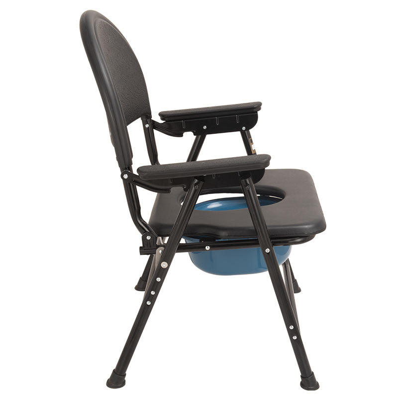 Chaise de toilette pliante 890A pour personnes handicapées, chaise de rééducation, structure en acier noir.