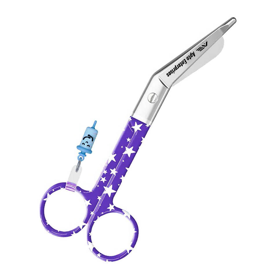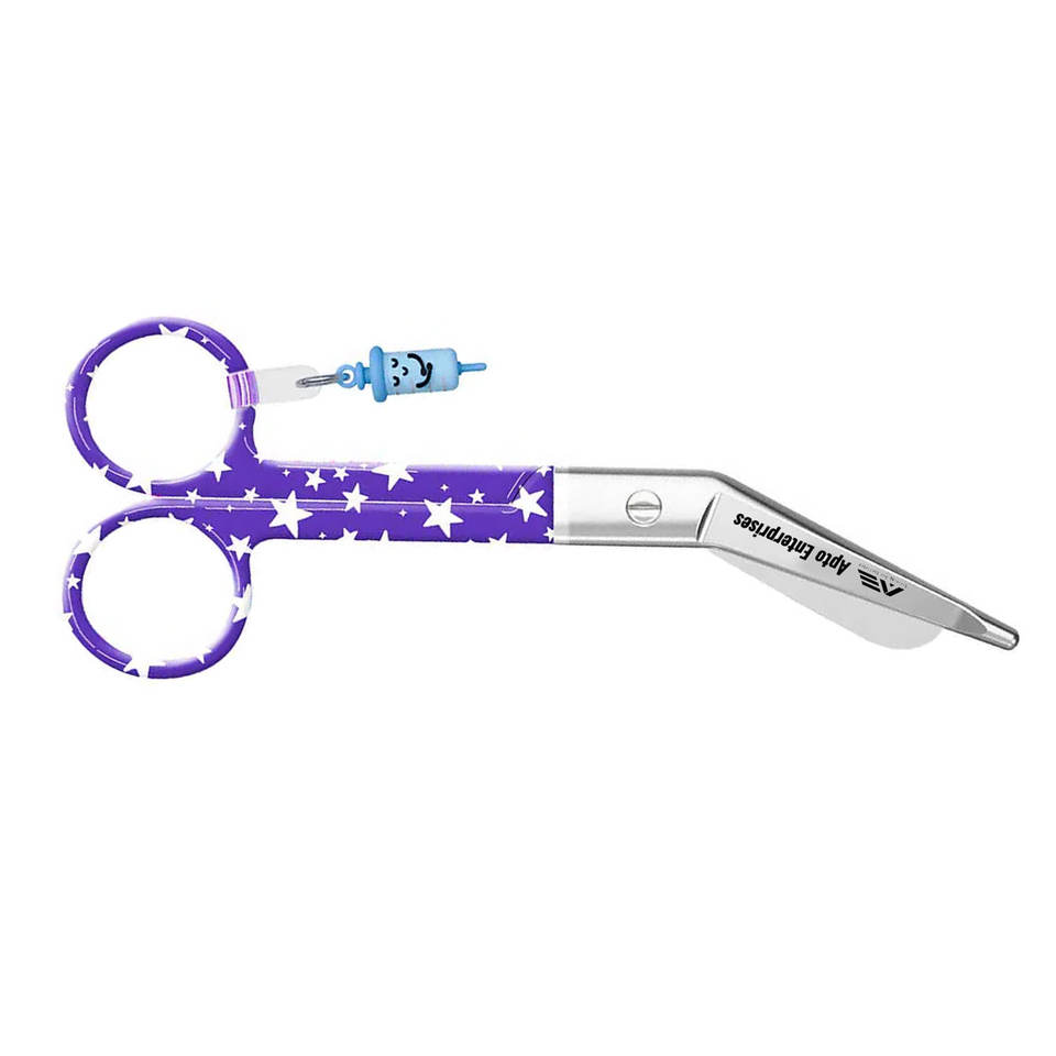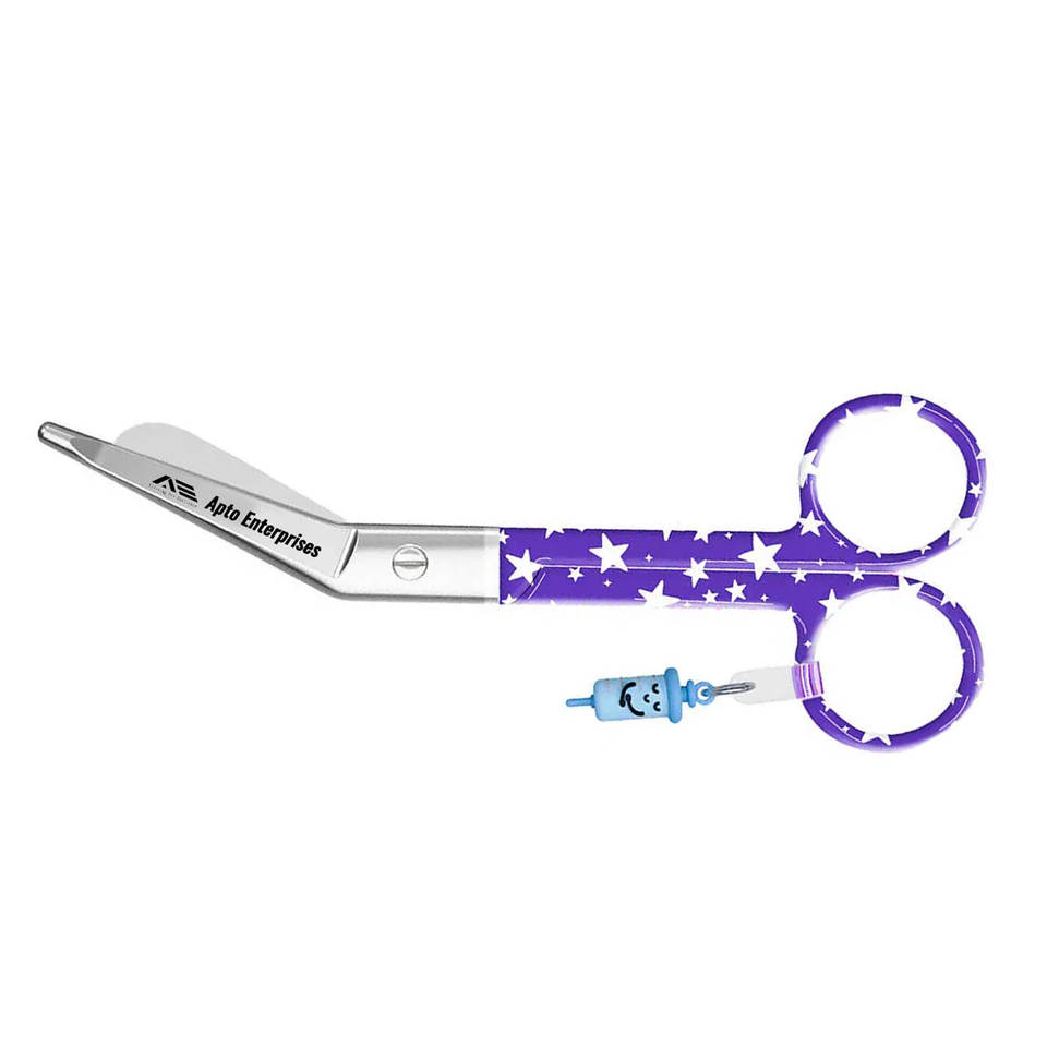 Ciseaux infirmiers manuels en acier inoxydable, design à motif étoile en bec de canard, bleus, conçus pour des coupes rapides et précises, bandages, usage hospitalier