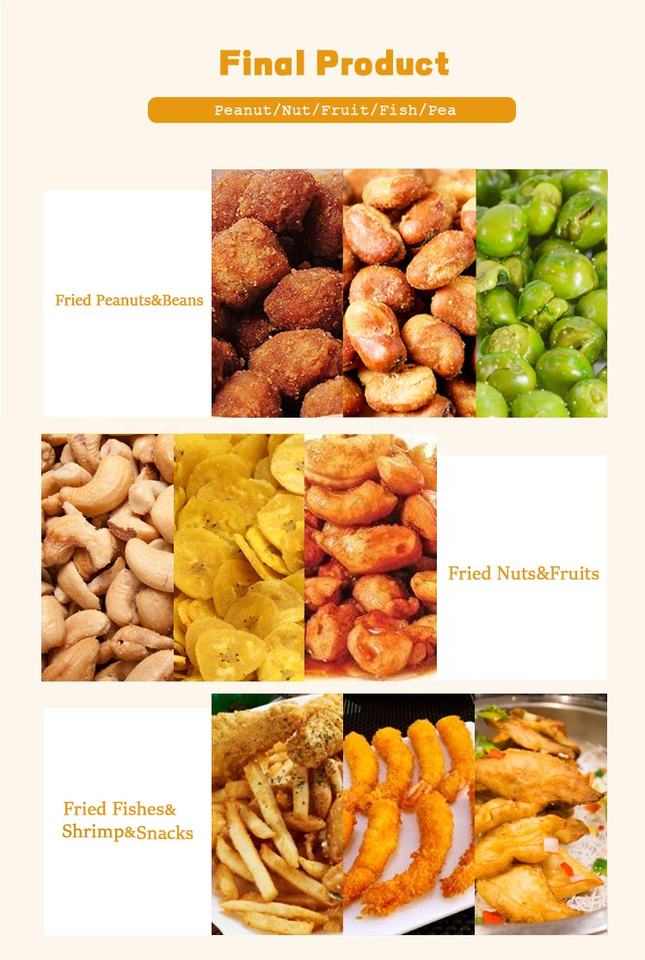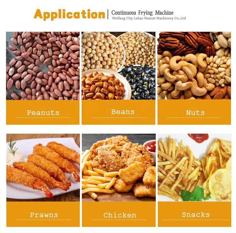 Machine à frire les noix, machine à frire les frites surgelées, ligne de production, machine à frire les en-cas, les poissons et les crevettes