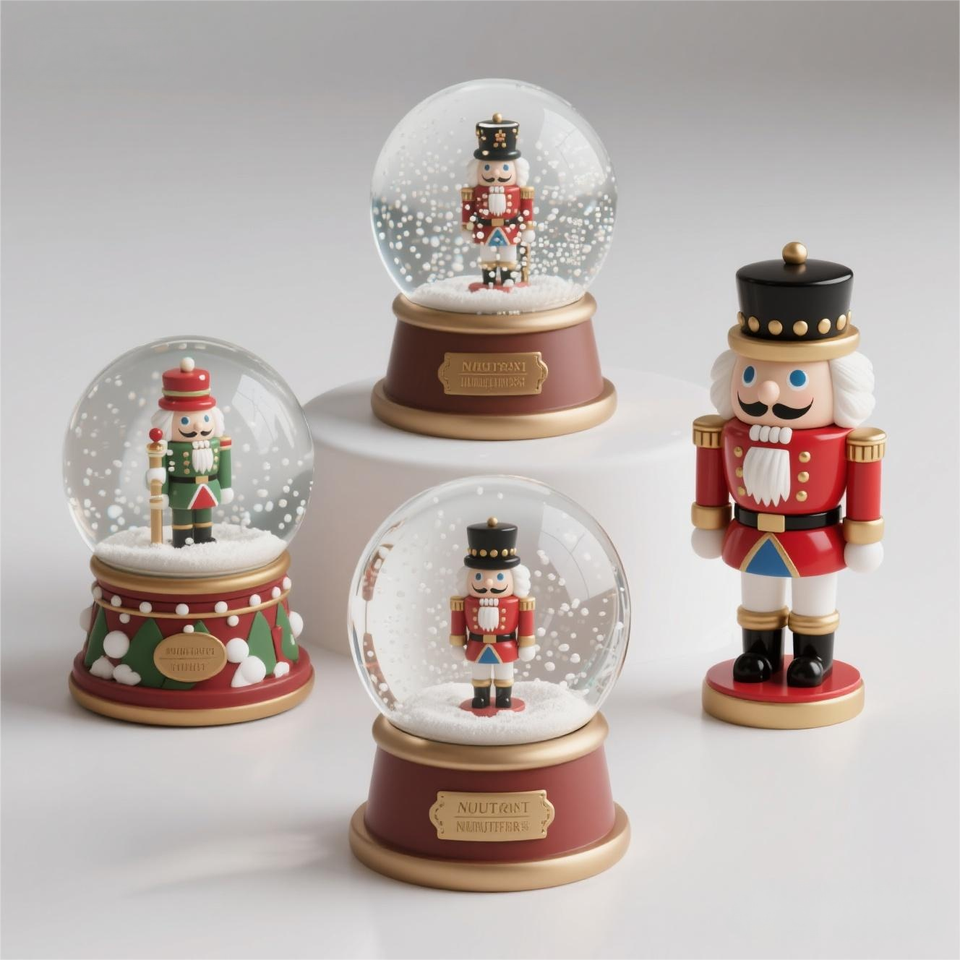 Globe à eau en résine Casse-Noisette. Scène 3D personnalisée peinte à la main, un trésor de Noël traditionnel et secouable avec de la neige festive.