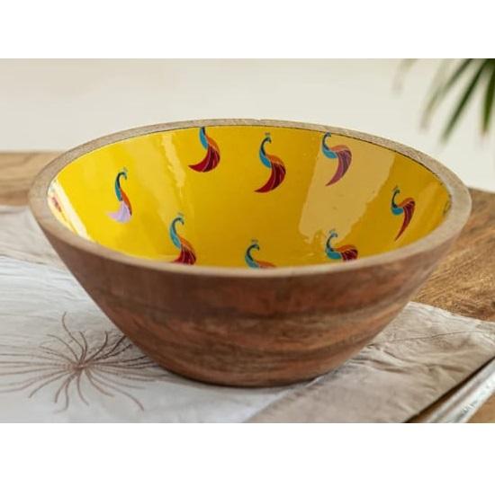 Bol à fruits rond en bois de mangue écologique pour apéritifs, bonbons, noix, olives et salsa