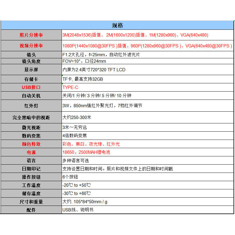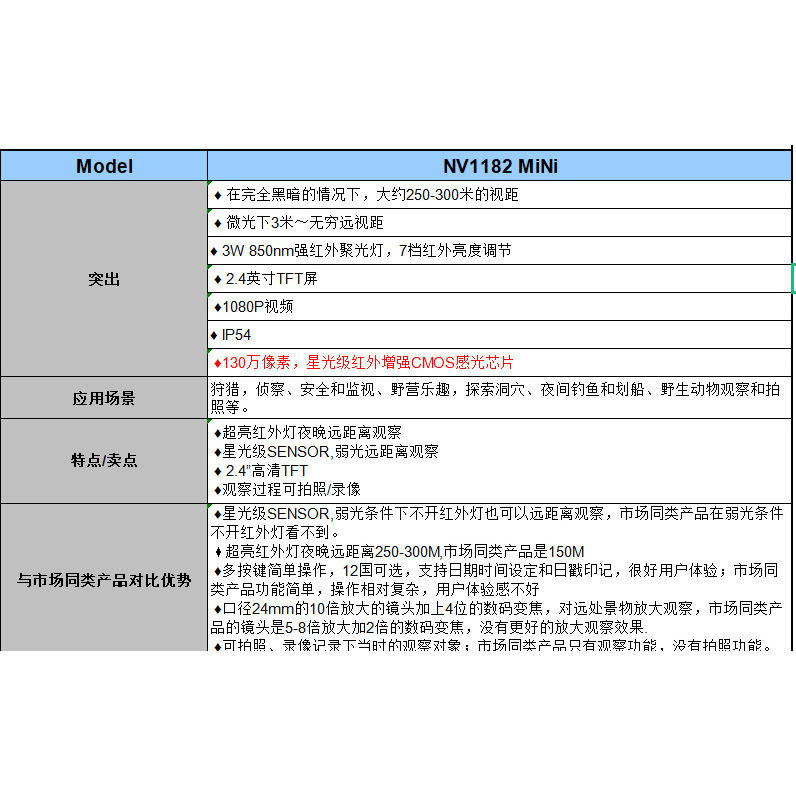 Caméra de vision nocturne infrarouge Nv1182 Mini 2,4 pouces avec capteur 130Mp pour la chasse et la surveillance