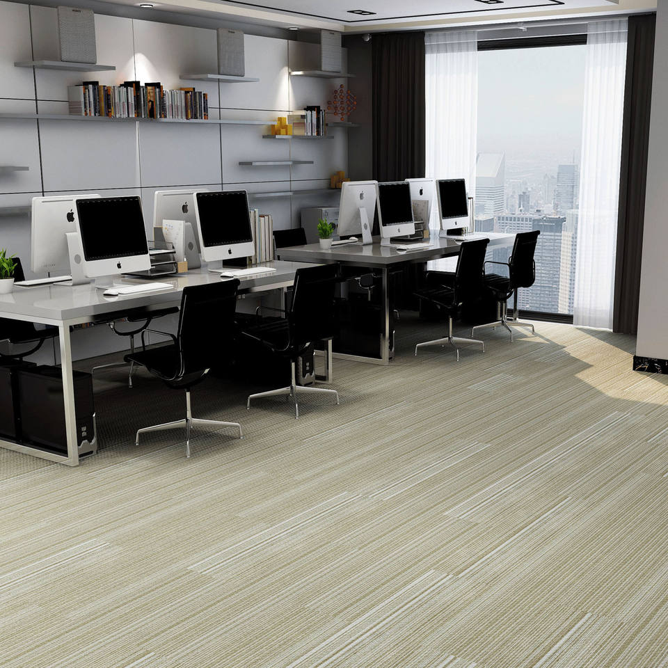 Dalles de moquette modulaires en nylon écologiques antidérapantes à boucles, motif puzzle, usage commercial moderne, hauteur de pile moyenne