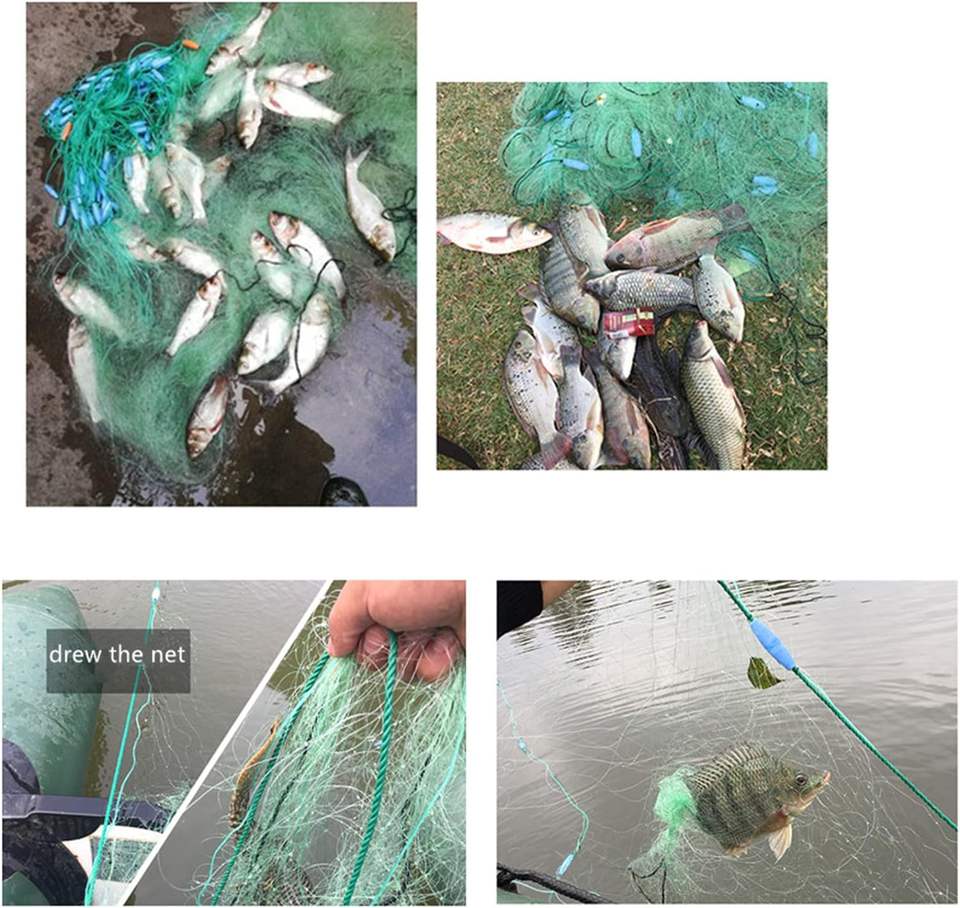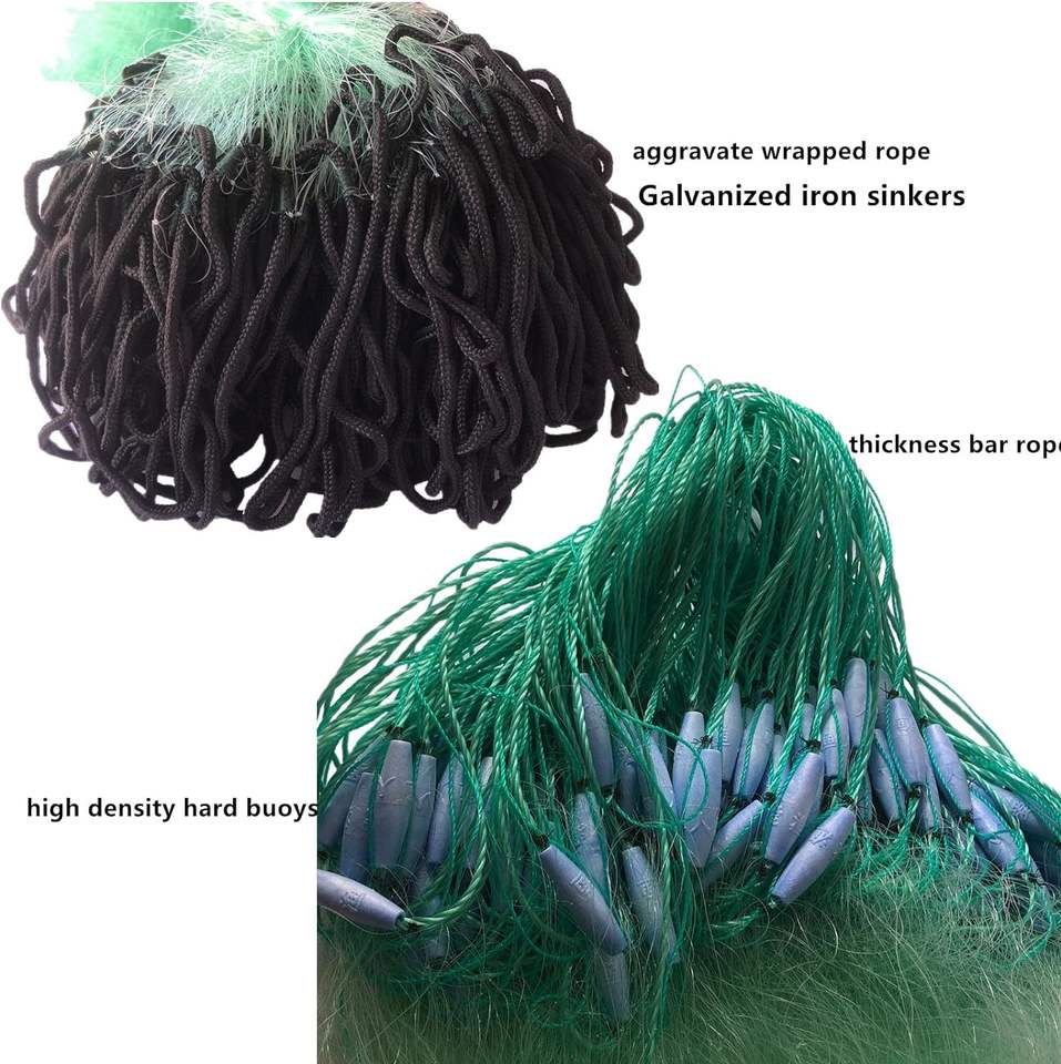 Filet de pêche en nylon, corde enveloppée, profondeur de 16 pieds, anti-enroulement, filet à branchies à 3 couches, plomb de 262 pieds, double nœud pour la pêche de survie
