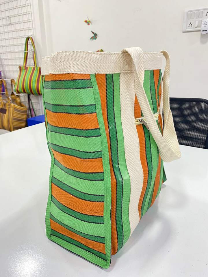 Nylon Mini Woven PP Shopping Bags Eco-Friendly Sustainable Recycled Polypropylene Plastic Striped Pattern Recycled in India-Bulk