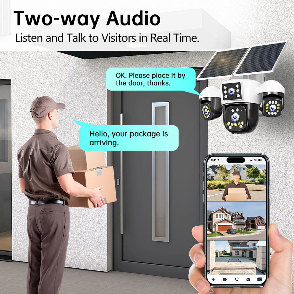 Caméra solaire 4G avec carte SIM NyteElf 12MP Ultra HD, quatre objectifs, PTZ, détection de suivi humanoïde, alarme vocale, caméra CCTV solaire