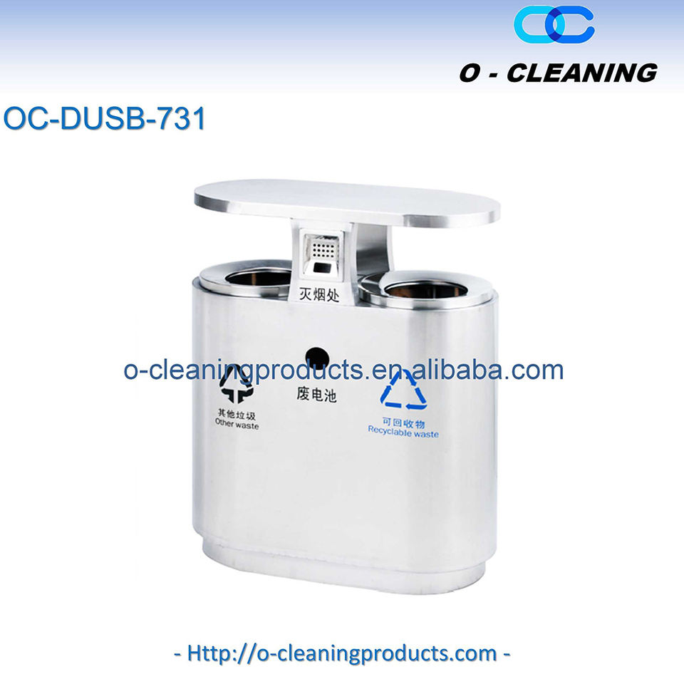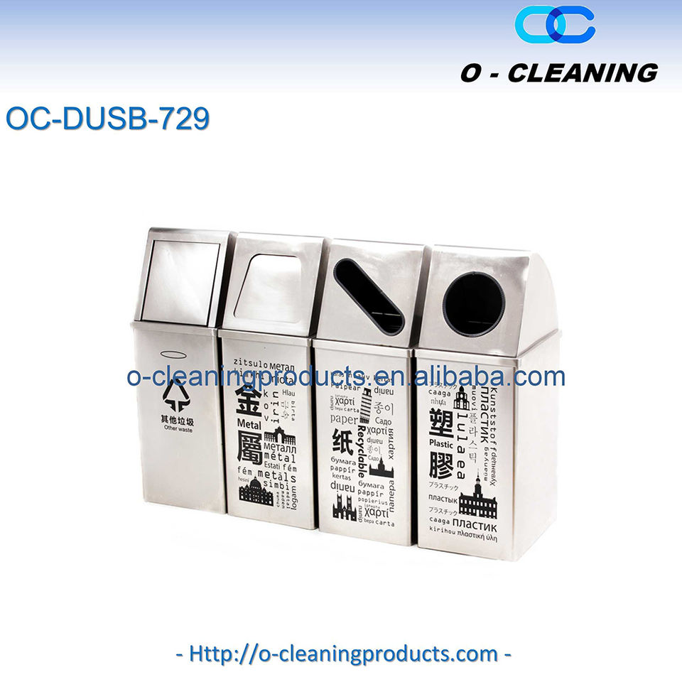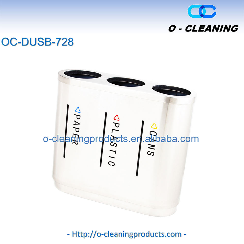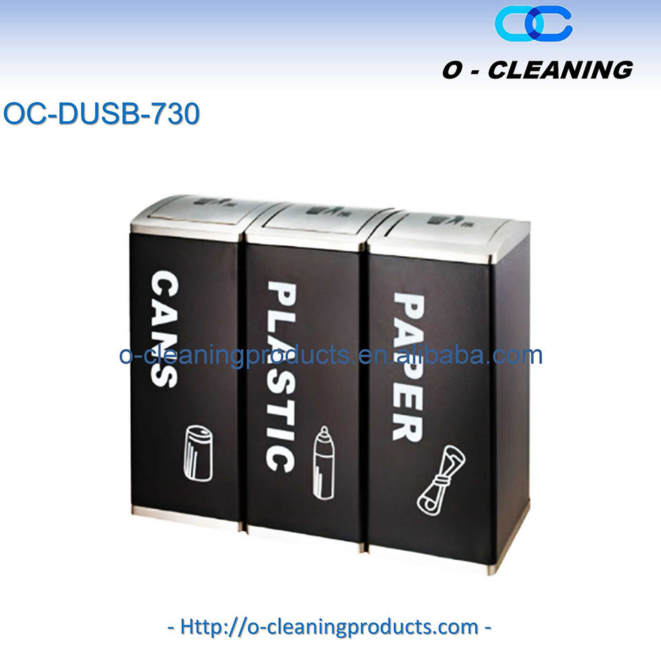Poubelle de cuisine commerciale à 3 compartiments en acier inoxydable, couvercle pivotant, poubelle en métal recyclable/poubelle