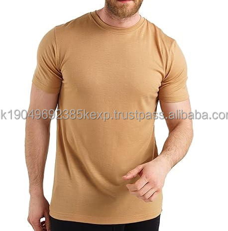 T-shirts à col rond de couleur marron, logo personnalisé, t-shirt uni vierge, mélange de tricot, impression personnalisée, t-shirt oversize pour homme en laine