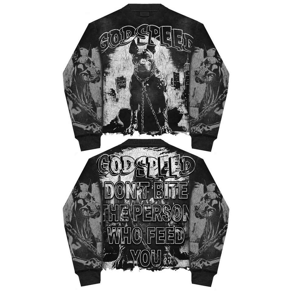 O-Neck Men's 100% Cotton Printed Hip Hop Long Sleeve Waffle Knit Top Rhinestone Acid Wash Oversized Distressed Hem Design Boxy