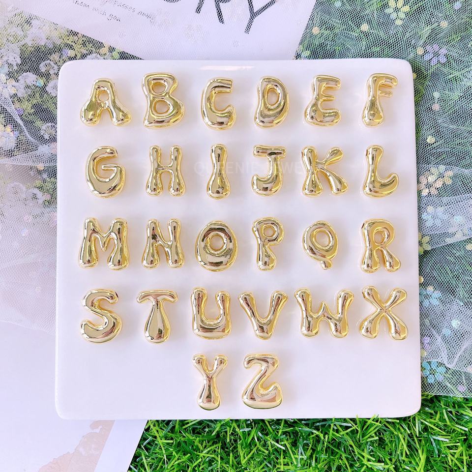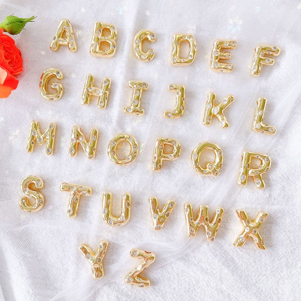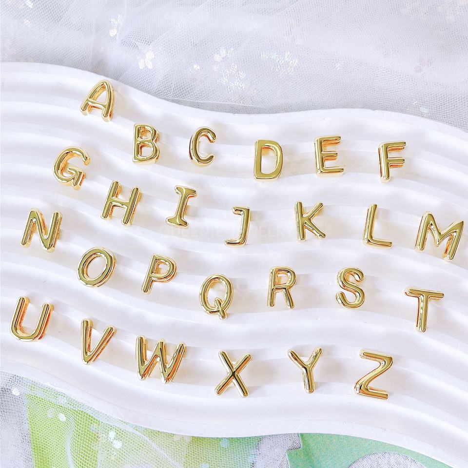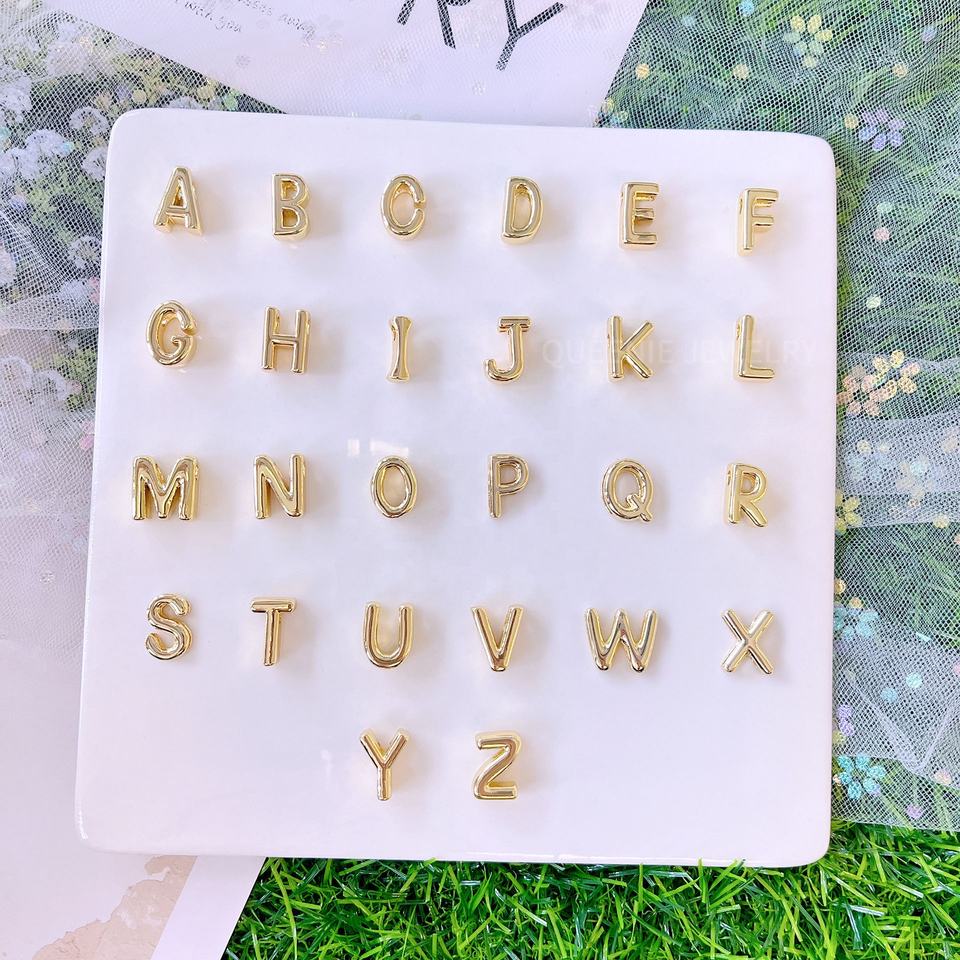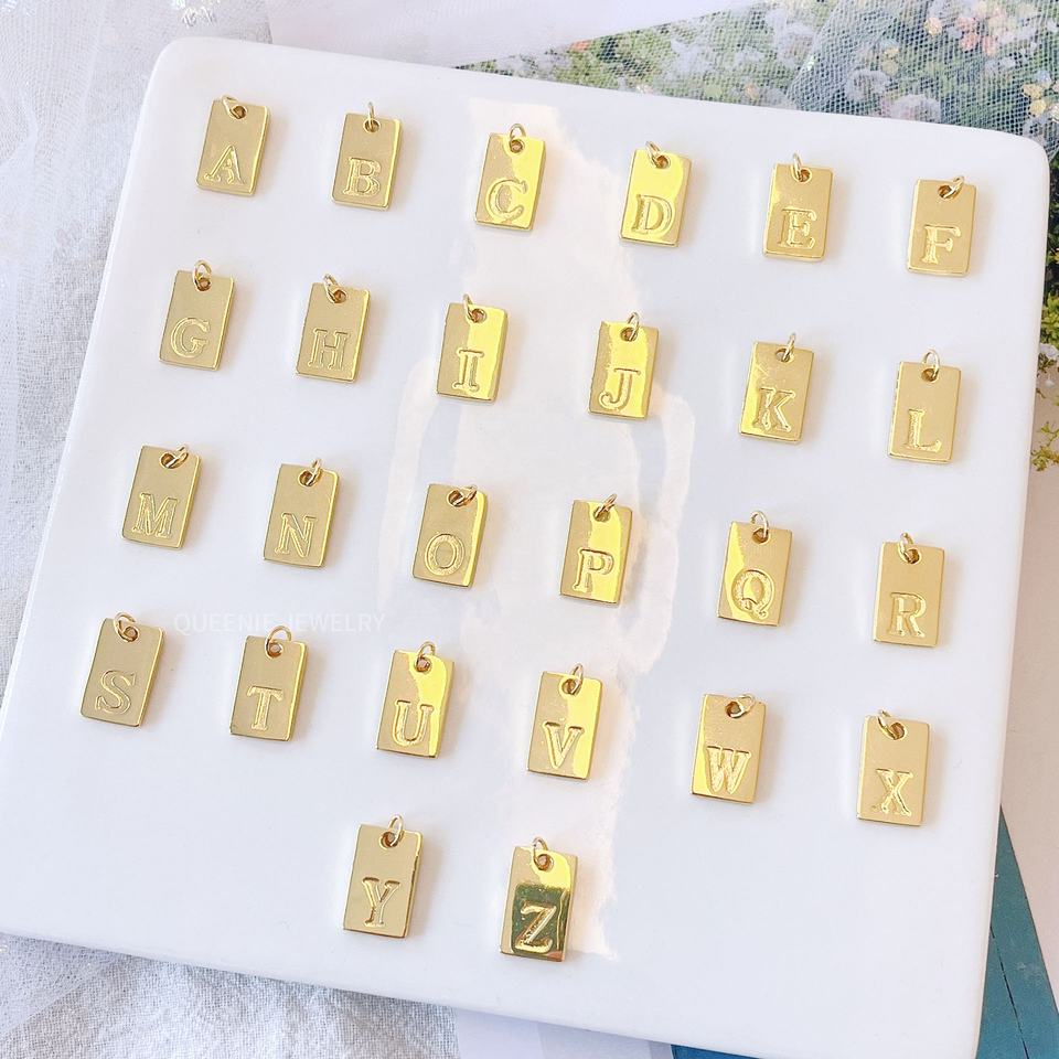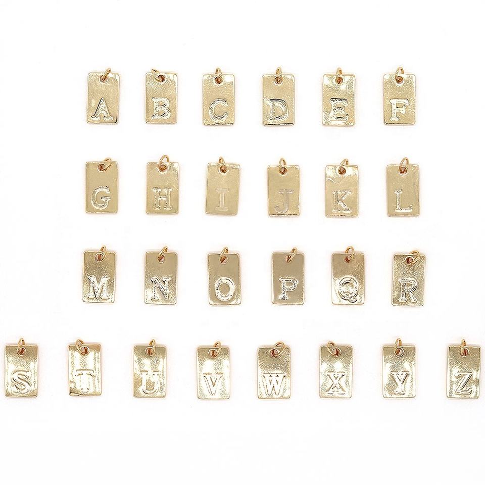 O-chaîne avec aiguille 18K Or Cube A-Z Lettre Étiquette Initiale Lettre Pendentif Personnalisé Initial Mini Pendentif Pour DIY Collier