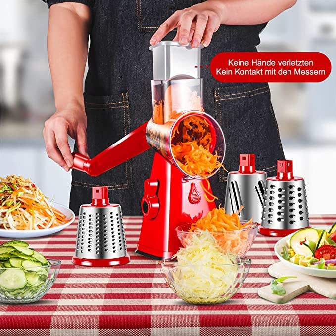O26 3 in 1 Vegetable Mandoline Slicer Swift Rotary Drum Grater Nut Shredder Veggie Cutter Peeler Spiralizer Cheese Chopper
