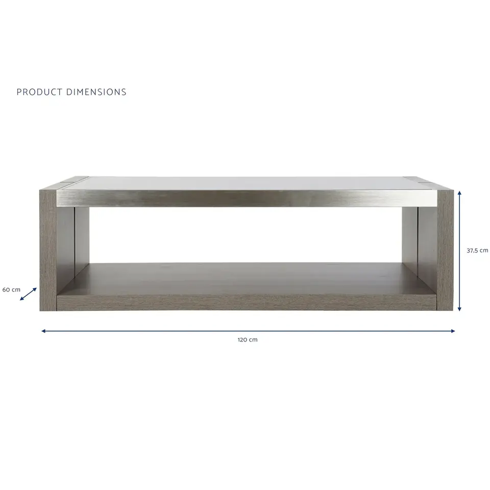 Oak and Aluminum Coffee Table with Glass Top Dimensions 120x60x37.5cm