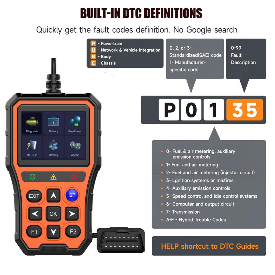 Caractéristiques spéciales:OBD2, lecteur de codes, outil de diagnostic automobile, témoin de contrôle moteur