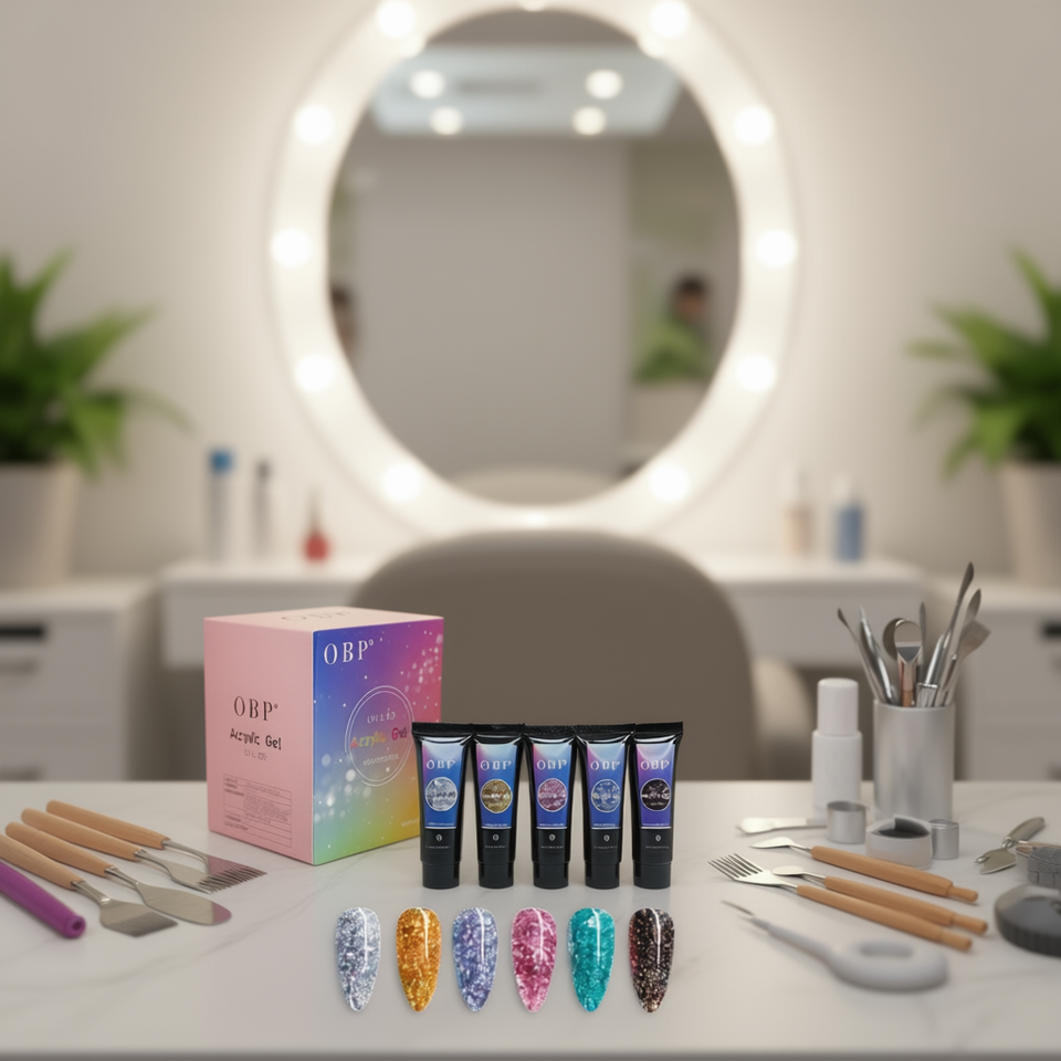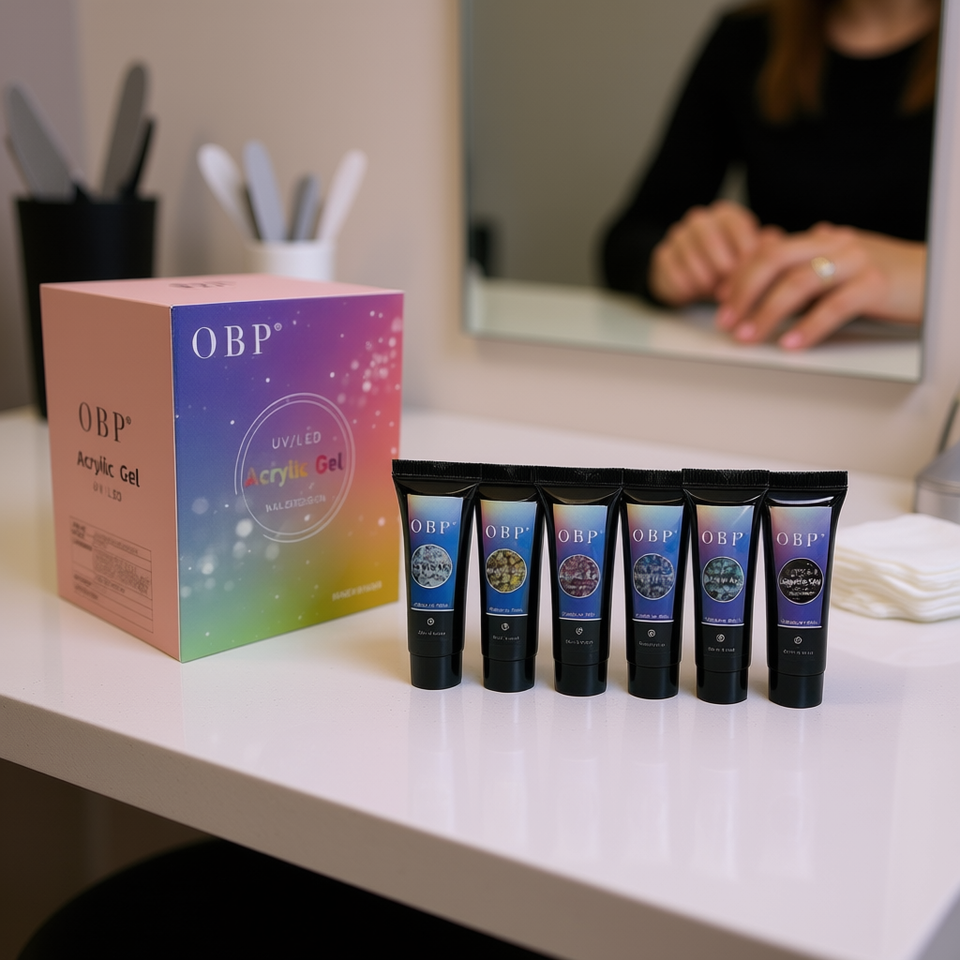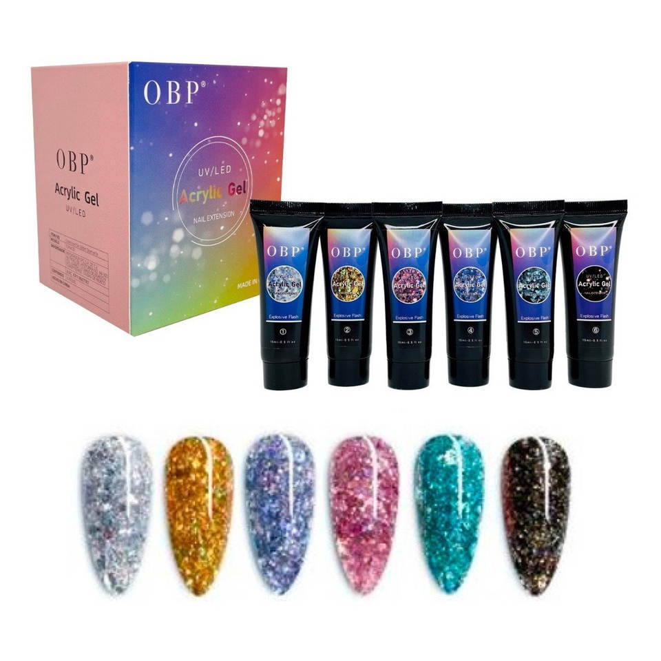 Gel acrylique OBP UV LED, lot de 6 pièces, paillettes épaisses, base aqueuse, usage professionnel pour salon de manucure