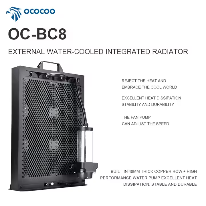 OCOCOO BC8 Serveur de refroidissement hydraulique en cuivre avec radiateur et ventilateur de refroidissement pour boîtier d'ordinateur