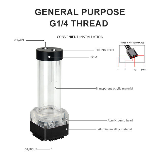 OCOCOO OC-U8-T 130MM pompe de refroidissement par eau 8 grand débit 12L/MIN POM réservoir acrylique PWM ordinateur refroidissement par liquide boîtier d'ordinateur