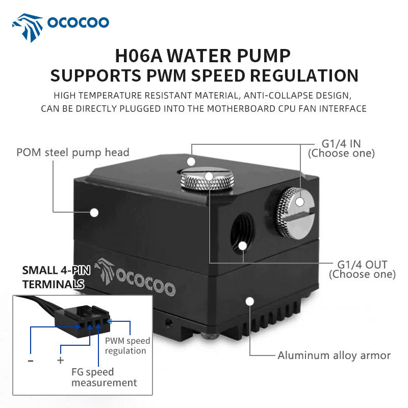OCOCOOAI centre de données OC-H06A-24V pompe à eau électrique à haut débit contrôle de température personnalisable 4pin roulement en céramique à faible bruit