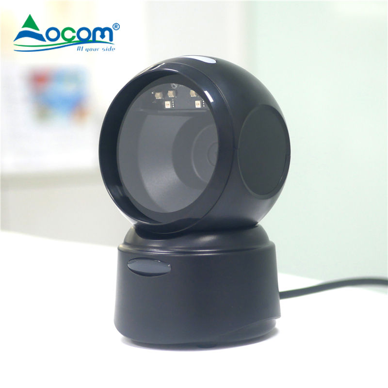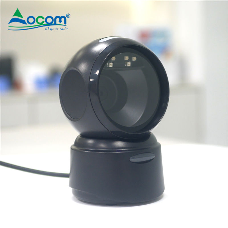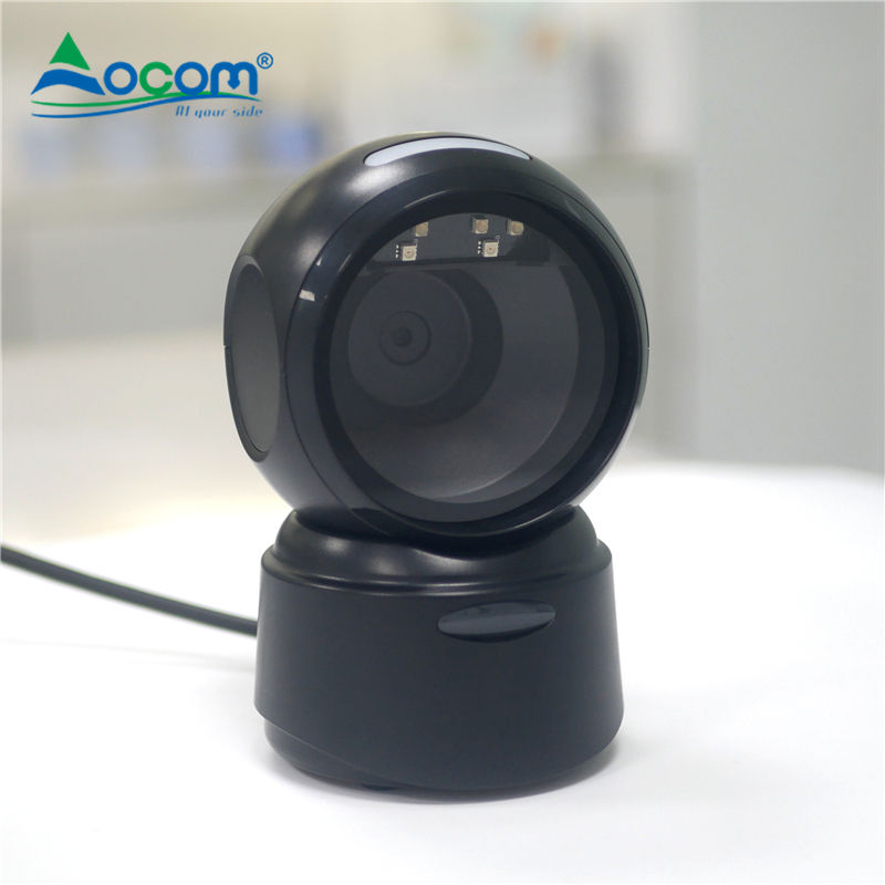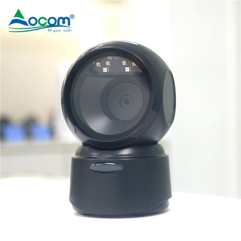 OCOM OCBS-T218 Lecteur de codes-barres de bureau 4 Mil 2D omnidirectionnel CMOS, scanner de codes-barres 1D 2D pour supermarché