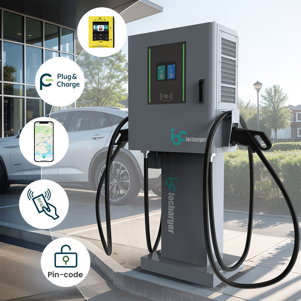 Station de recharge pour véhicules électriques OCPP 2.0.1, montage au sol, paiement par point de vente, boîtier mural, 30 kW, 60 kW, chargeur DC pour véhicules électriques, prise ISO15118, Plug and Charge