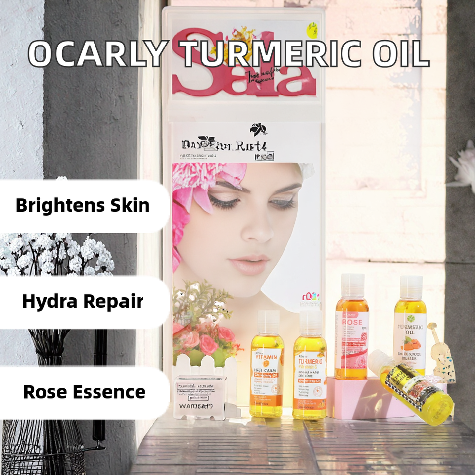 OCarly Huile Essentielle Réparatrice Hydratante Extra Forte au Curcuma et à la Vitamine C 100 ml, Soin Éclaircissant des Articulations avec Ingrédient à la Rose
