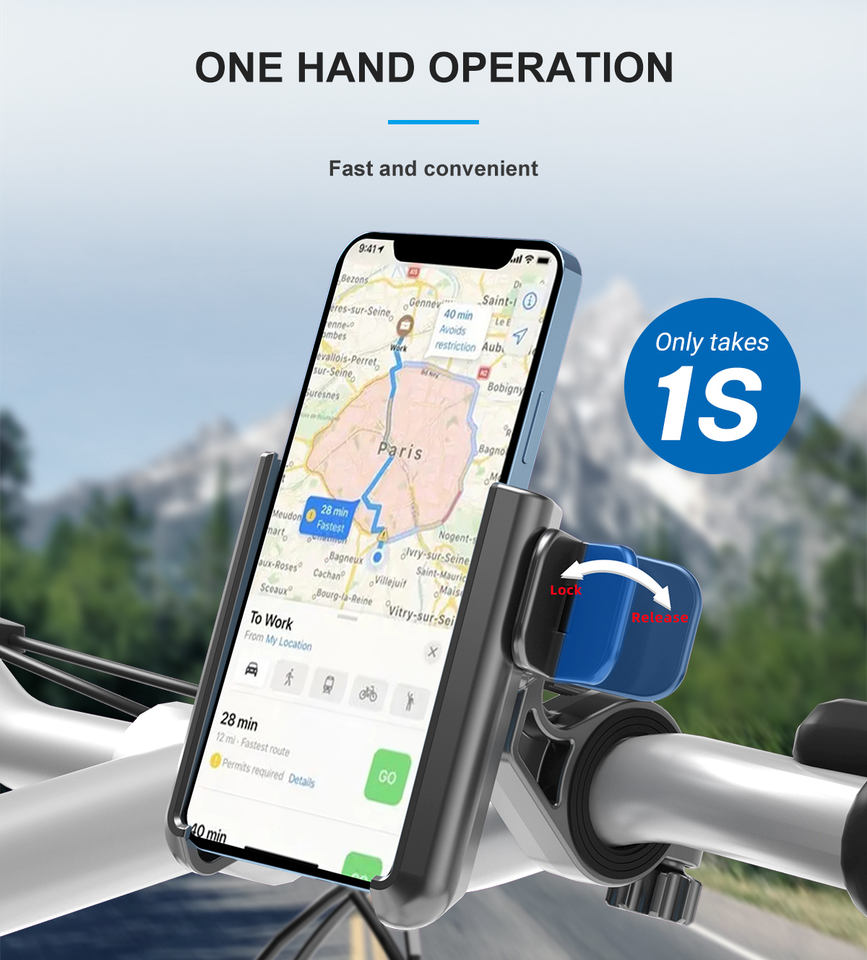Fonction 1:Support de téléphone pour vélo à dégagement rapide 1s