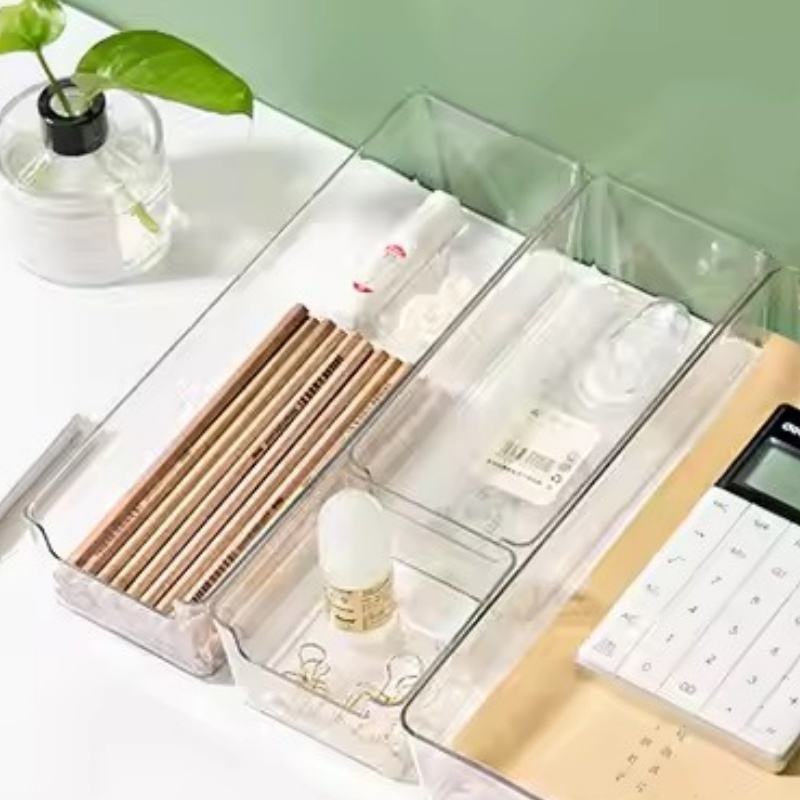 ODM Bathroom Kitchen PET Plastic Drawer Organizer Clear Storage Box for Dresser Makeup Kitchen Utensil Office