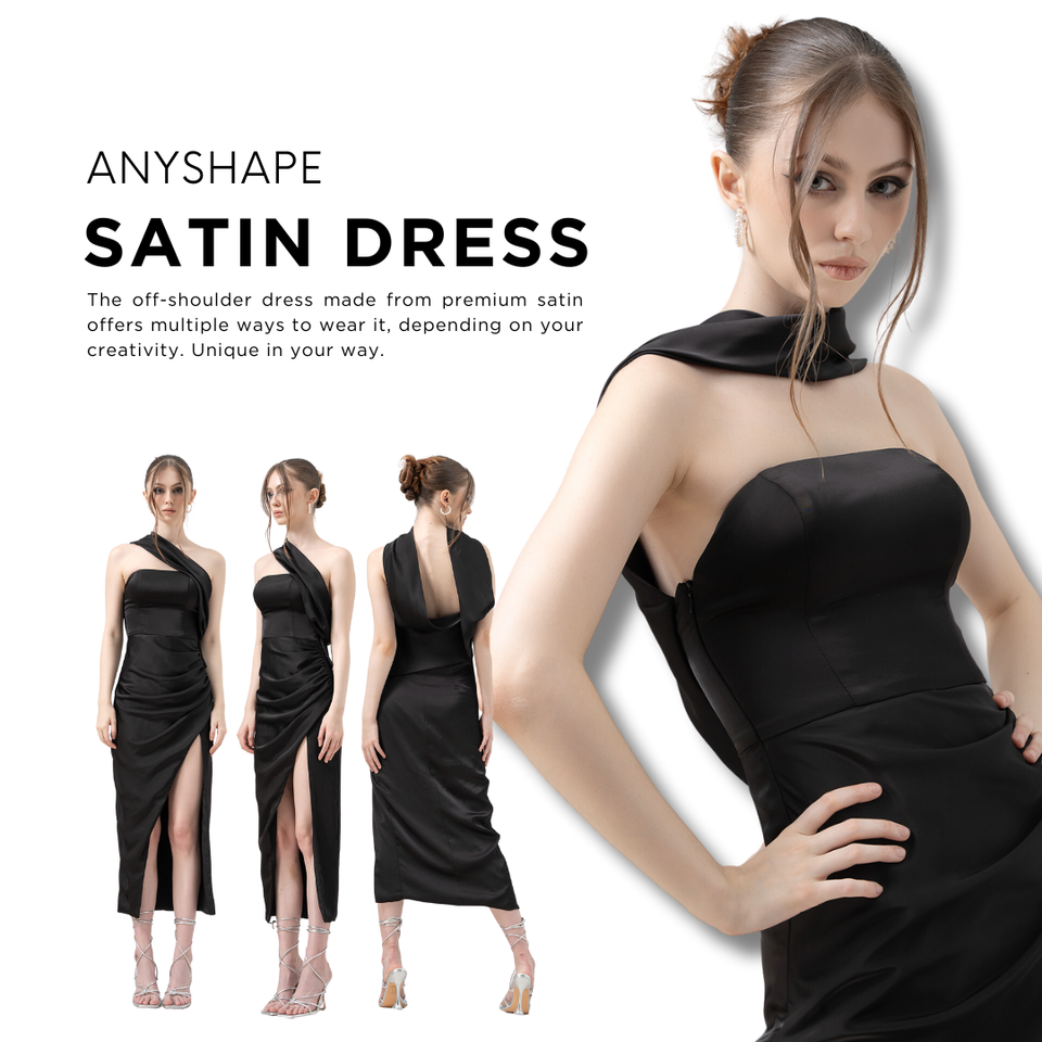 Technics:Satin bodycon dress with gathered draping and built-in padding.