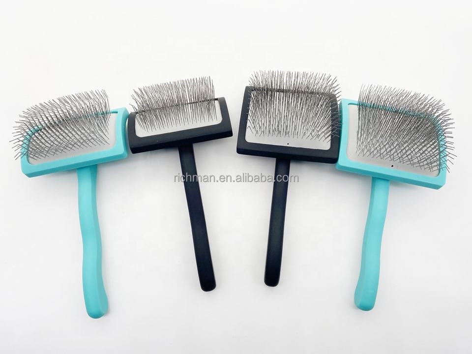 Brosse à dos incurvé ODM pour chien, manche à longues broches de 25mm, Tuffer rapidement que les enchevêtrements, brosse à lisser pour animaux de compagnie