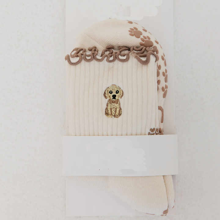 Chaussettes de yoga en coton antidérapantes personnalisées ODM, tricotées, avec grip pour Pilates, broderie pattes de chien, pour les amoureux des animaux, volants, usine VN