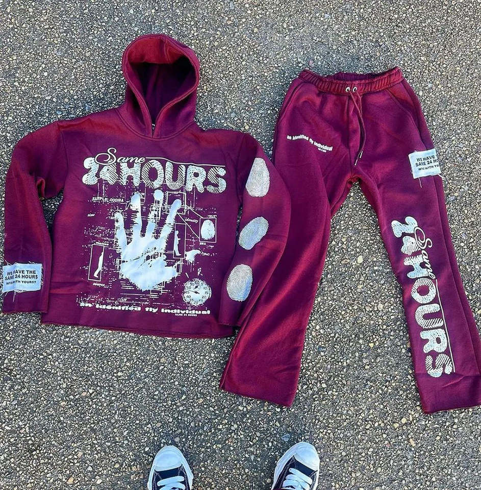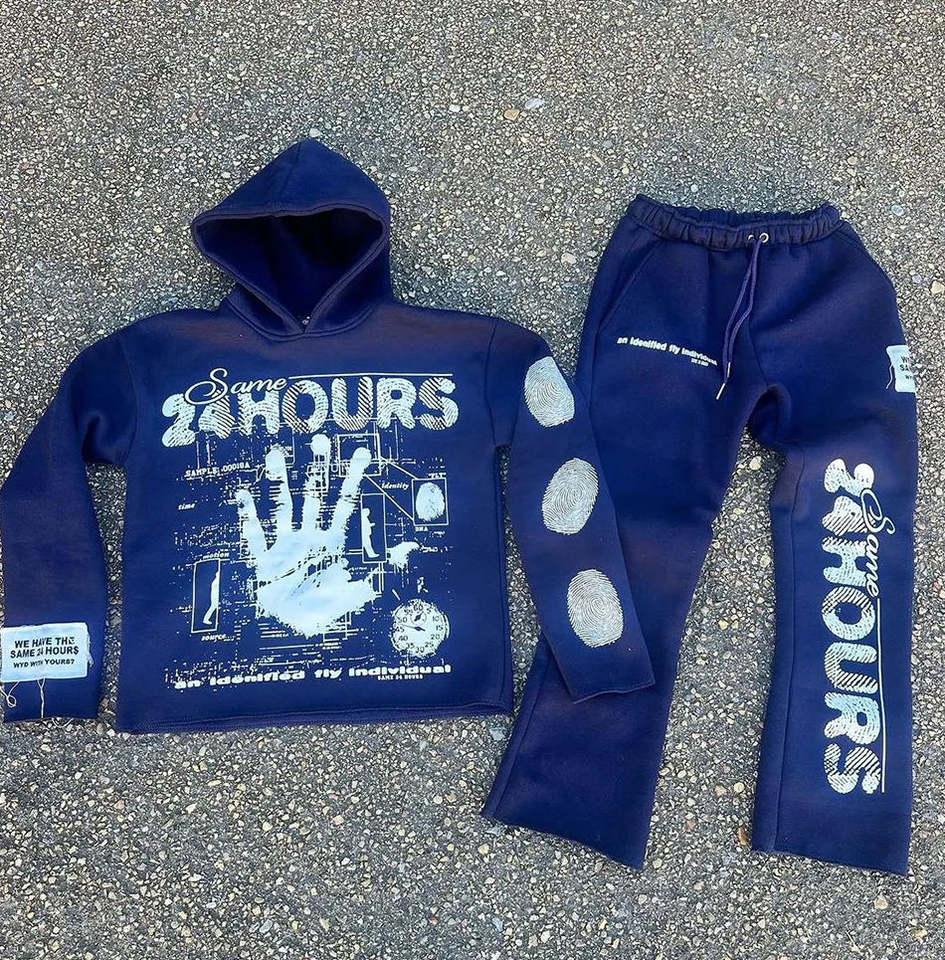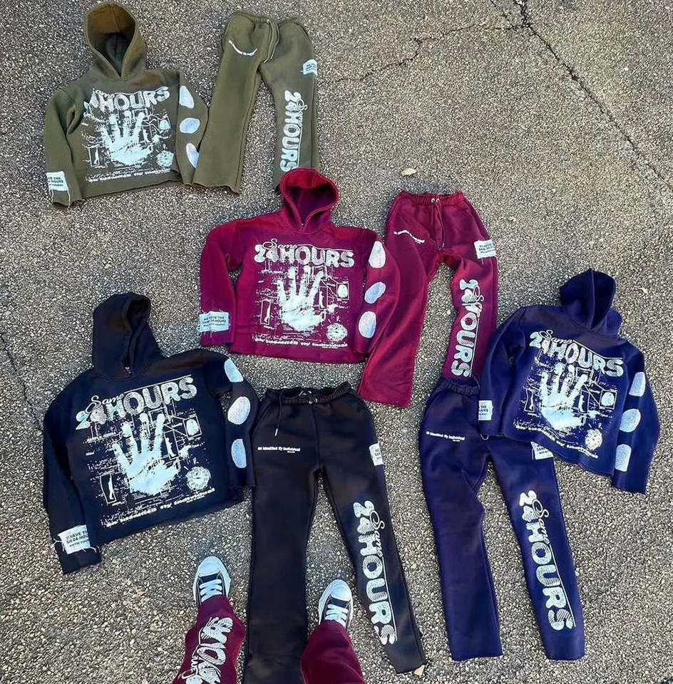 Ensemble de survêtements 2 pièces streetwear en coton 100% respirant, imprimé sérigraphié effet vieilli, personnalisé ODM pour l'hiver