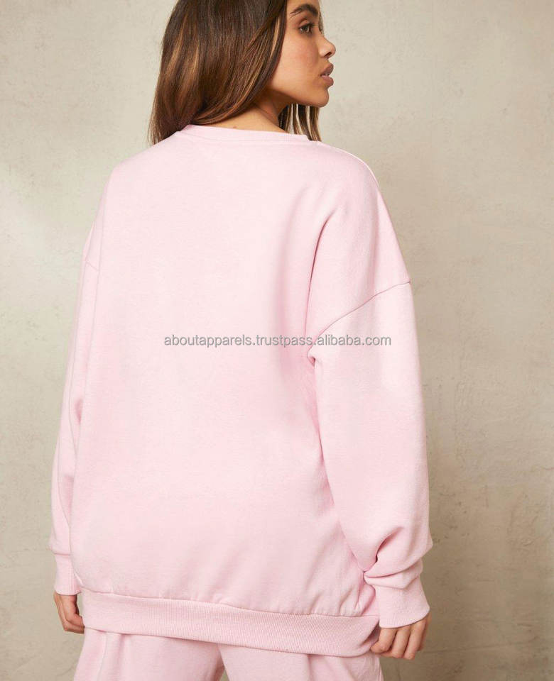 ODM personnalisé français éponge goutte épaule ras du cou sweats à capuche haute qualité coton col rond surdimensionné femmes avant Badge