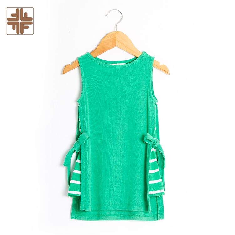 Product Name:ODM eco-friendly o-neck green small girls dresses without sleeves