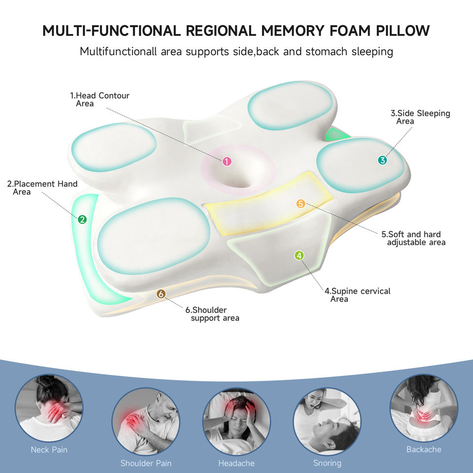 ODM OEM Almohada Oreiller cervical en mousse à mémoire de forme Forme de papillon pour les douleurs d'épaule Oreillers de sommeil cervicaux orthopédiques