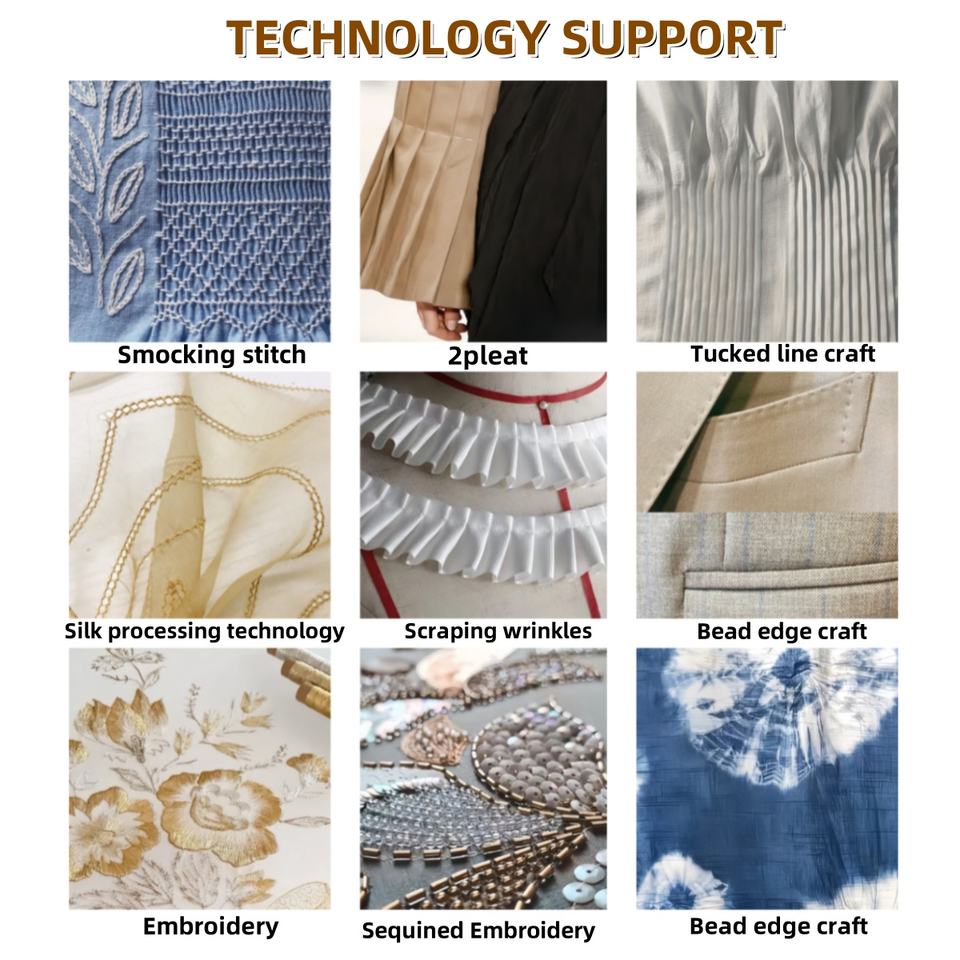 Brodé, Imprimé, Lavé, Application, Strass, Broderie unie, Broderie spangle, Bloc de couleur, Colorant d'immersion, Imprimé Batik, Broderie de serviette, Couleur Gradient, Broderie chaîne, Whisker, Perlé, Flocage, Ridé, Lave aux enzyme, Broderie à la main, Teint clair, Fils teints, Cravate teinte, Délavé, Lavage de sable, Bleach Wash, Rinçage, Broderie 3D, Teinture à vêtement, Déchiqueté/déchiré, Broderie à paillettes, Laser Lavage, Découpage automatisé, Broderie en tissu apposée, Broderie de perles à ongles, Broderie flocage, Broderie de maching/broderie automatisée, PP pulvérisation/souffle de sable