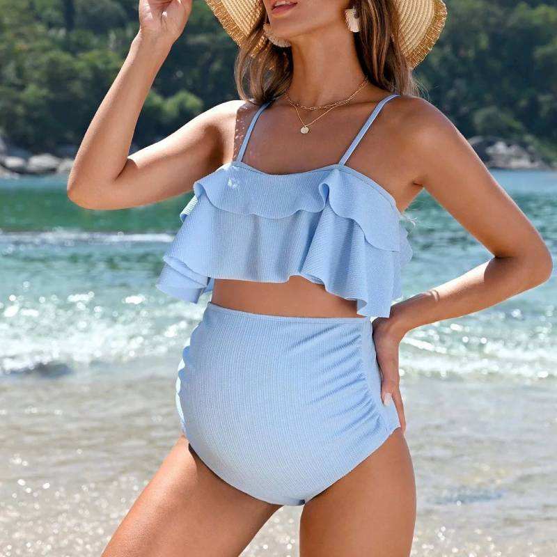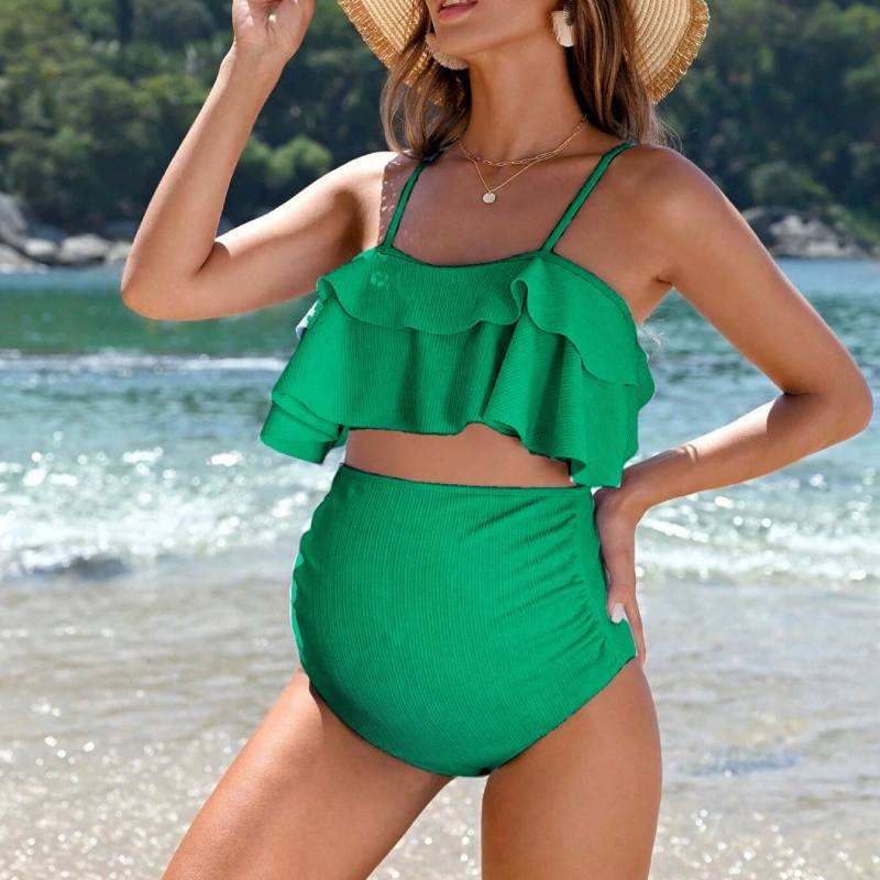 Maillots de bain de maternité personnalisés ODM/OEM avec logo, à volants, pour femmes enceintes, bikinis d'été, tankinis, vêtements de plage de grossesse 2026